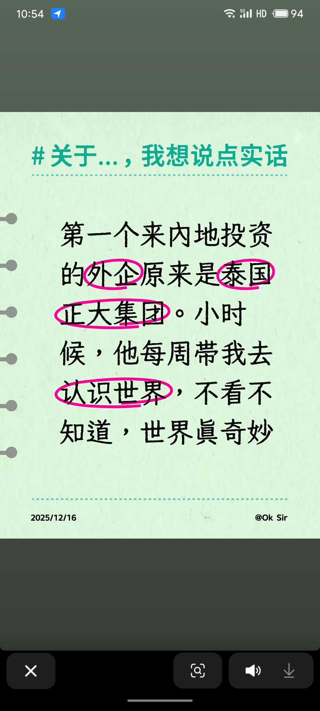 正大集团作为改革开放后首家投资内地的外资企业的历史,与个人童年观看《正大综艺》的回忆交织,亲切而富有时代感。节目“认识世界”的口号,恰似外资涌入带来视野开放的隐喻,从小视角映照大时代。