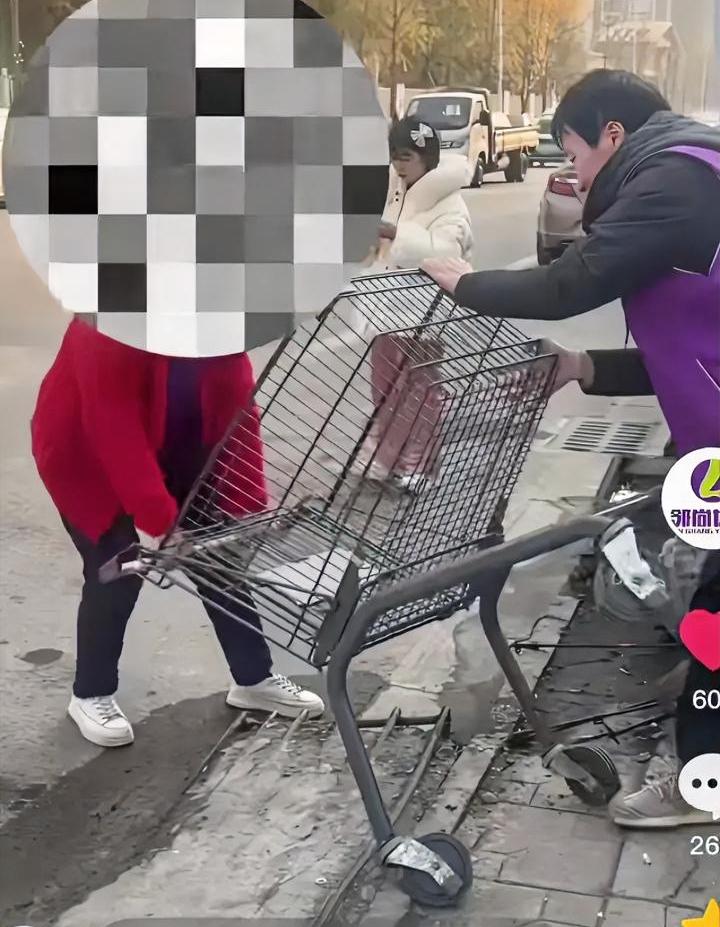 有点为老不尊了,老大买买菜想顺走购物车,小算盘打的真响。 近期一名老大妈和超市小伙“拔河”抢夺购物车的视频火了,明眼人一看就知道,这又是老大妈想占便宜。 购物车是超市提供给顾客共用的工具,也是有成本的,怎么能自己推回家去? 超市的小伙子发现后上前阻拦,老大妈一哭二闹的,惹来一群人围观,也不怕丢人,最后超市吓唬她说报警了,老大妈这才悻悻的离开。 幸亏小伙子发现及时,要不然又得损失一辆购物车,得奉劝这位大妈,不要总想着占小便宜,社会风气需要大家共同维护。