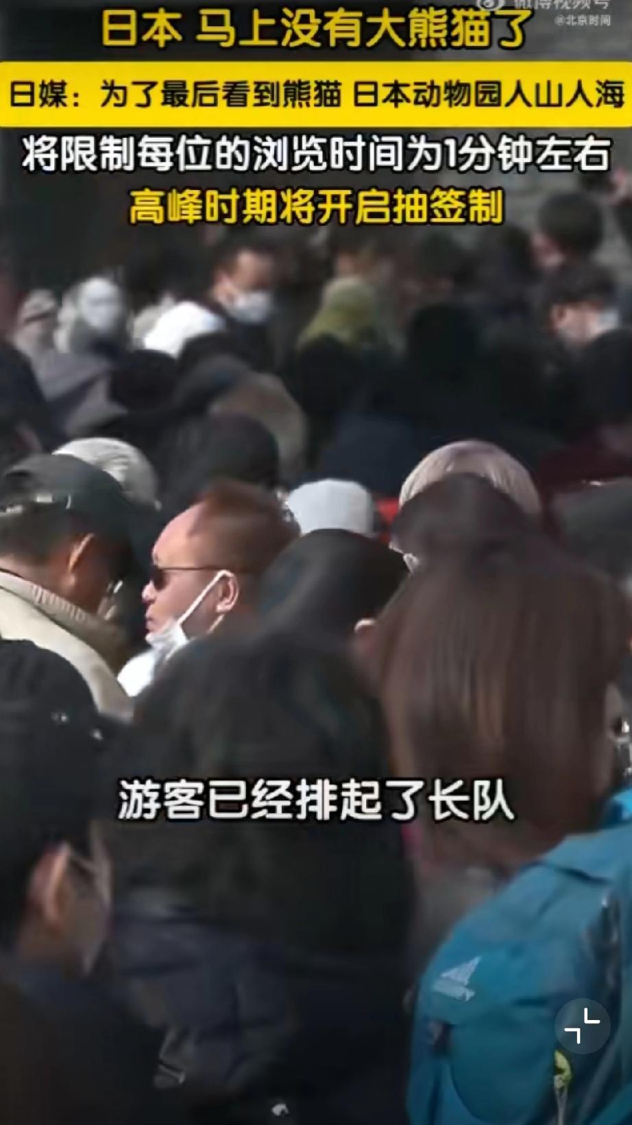 日本民众赶往动物园告别熊猫。 一边是90%以上民众对中国不友好,一边又全民喜欢大熊猫,你以为日本人是撕裂?不是的,这是日本媒介一直以来的策略,就是将中国文化、中国美食、中国大熊猫和如今的中国政府和中国人割裂开来看待!所以我说“日本已经完成了对华战争舆论动员”并不是一句危言耸听的话。个人观点,仅供参考。[握手]大熊猫 外国大熊猫 上野大熊猫