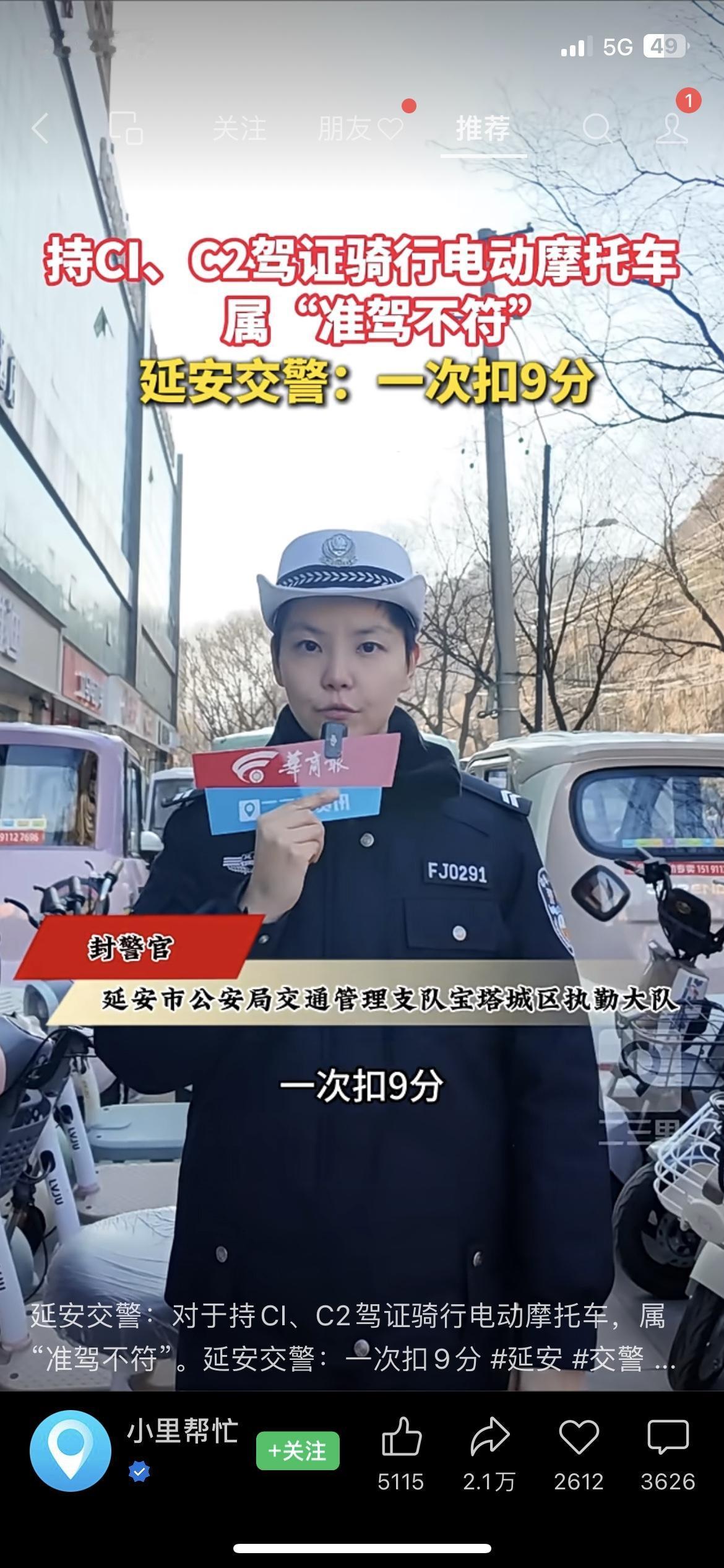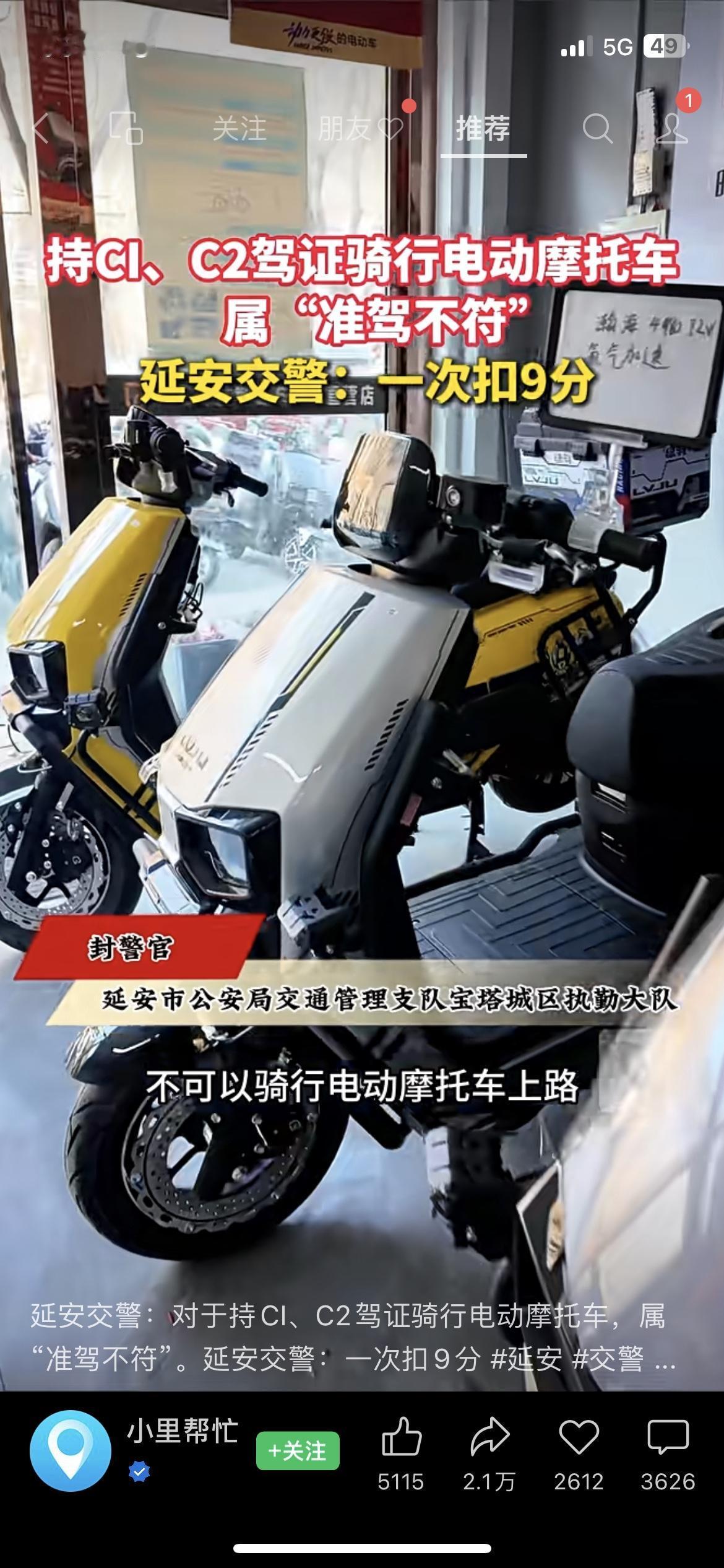 注意!延安持C1/C2证骑电摩,一次扣9分别踩坑 最近常骑电动摩托的延安朋友,社