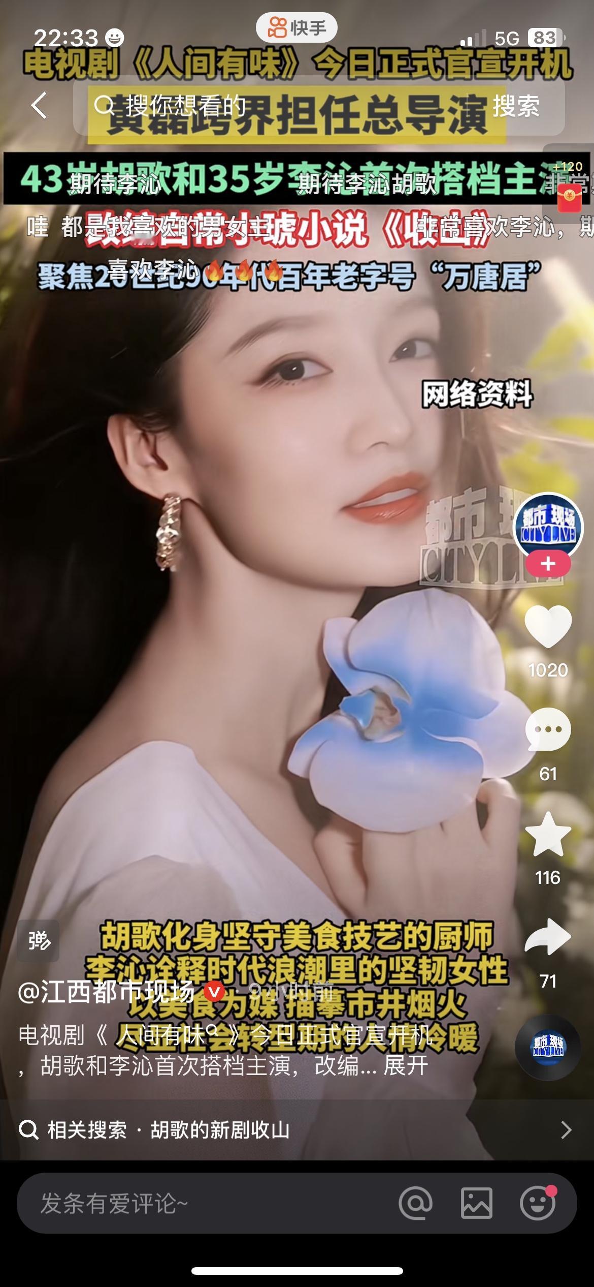 别错过!胡歌李沁首次合作新剧,追剧党直接狂喜 平时爱追都市剧的朋友赶紧看 官方刚官宣,《人间有味》开机,黄磊任总导演 胡歌演厨师,李沁饰坚韧女性,改编自小说《收山》 说实话,这俩首次搭档,光看人设就狠狠期待了 聚焦90年代老字号,满屏都是市井烟火气 我已经把这部剧锁死追剧清单,就等开播了 你最期待他俩剧中的哪种对手戏?评论区聊聊~