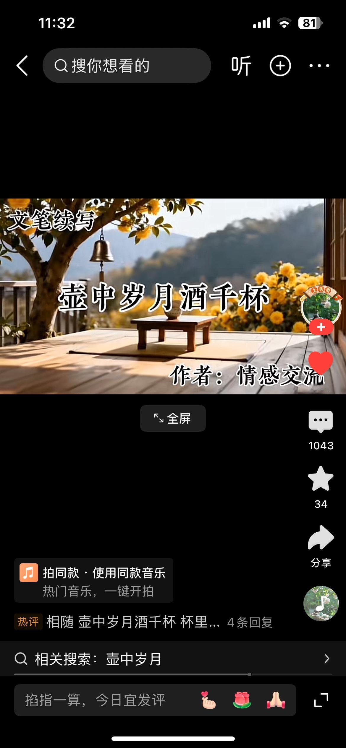 三盏清茶怡老友, 一杯浊酒醉红颜。 横批:《老友与红颜》
