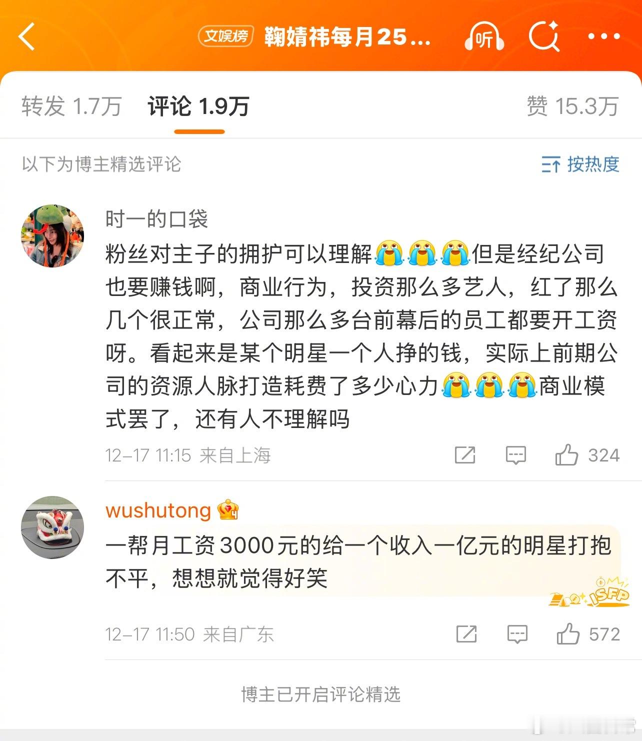 丝芭给自己评论区开精选了鞠婧祎每月25万元固定工资丝芭说鞠婧祎经常报销和工作无关支出