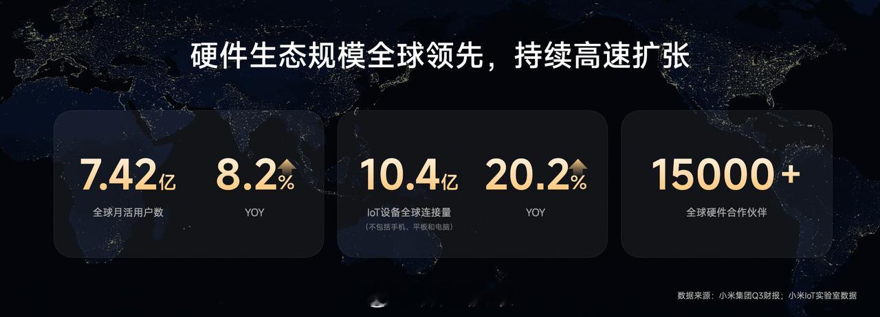卢伟冰称小米用户规模超7.4亿最新数据:小米用户超7.4亿!连接设备破10亿台,小米人车家生态圈持续丰富中,而且生态护城河越来越深了,从小米手机到小米汽车,从小米澎湃OS到玄戒芯片,还有IOT生态链企业等等,小米带动很多行业发展,开放的朋友圈才能做大做强,趁着AI大模型的东风,开发者得抓紧上车了