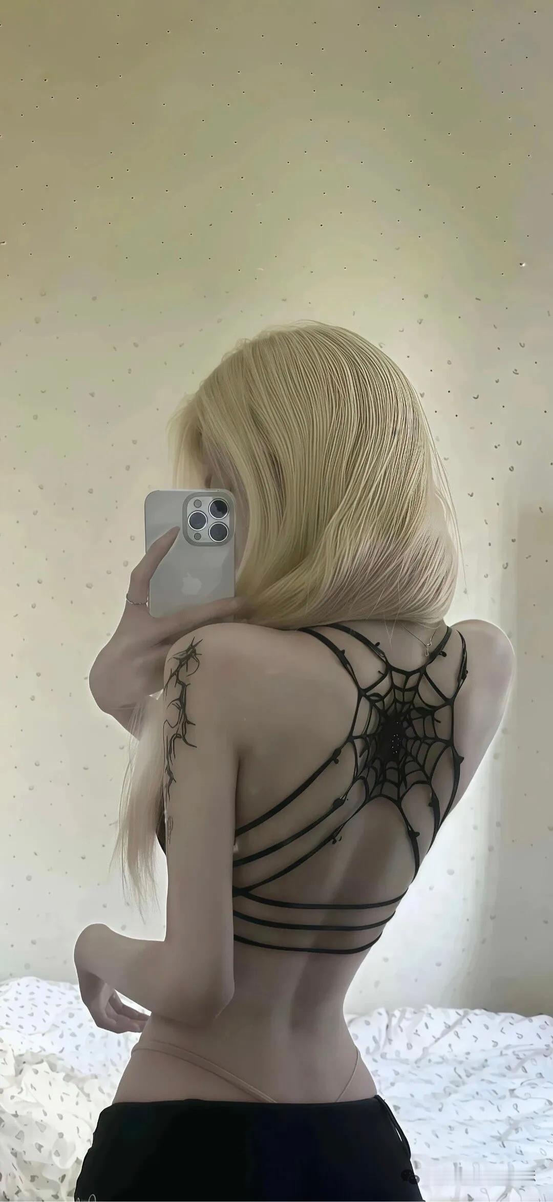 她的后背像一弯被月光打磨过的瓷,肩胛骨在肌肤下轻轻起伏,仿佛两片欲飞未飞的鹤羽。 2. 脊椎沟陷成一道隐秘的山谷,发梢未干的水珠沿脊线滚落,像夜雨顺着青瓦,悄无声息地跌进腰窝的深渊。 3. 肩胛开合时,蝴蝶骨在灯下振出半透明的影子,像一封被拆开的旧信,露出里面最柔软的褶皱。 4. 后颈那枚朱砂小痣,是雪原里唯一不肯融化的红豆,随着她低头的动作,在黑发间忽隐忽现。 5. 当她抬手挽发,背脊拉出一道惊鸿的弓,肌肤与空气摩擦出无声的电流,让旁观者忽然听见自己喉结滚动的声音。