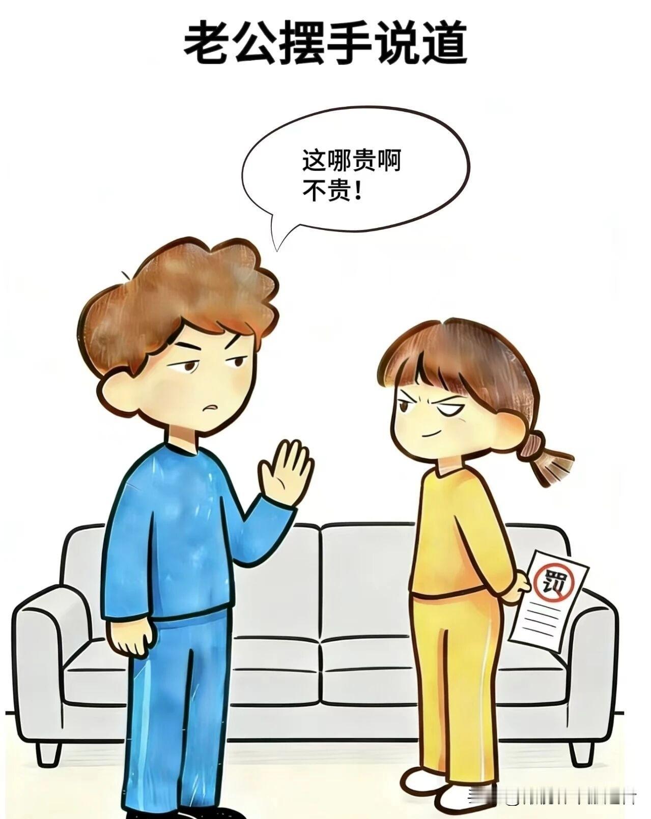 趣味漫画:老婆:我今天买了一套衣服200块,贵不贵,老公:这哪贵啊,不贵,老婆掏