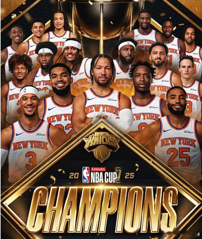 杯赛冠军!尼克斯拿到自1973年总冠军之后的首个冠军奖杯12月17日讯 今天结束的NBA杯决赛,尼克斯124-113战胜马刺,夺得本届NBA杯的冠军。据The Athletic报道,这是尼克斯自1973年夺得总冠军以来的第一个冠军奖杯。尼克斯创立于1946年,队史上曾经夺得过两次NBA总冠军,分别在1970年和1973年。本赛季常规赛,尼克斯目前的战绩是18胜7负,排名东部第二。