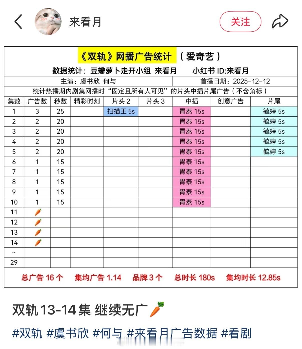 所以虞书欣、何与《双轨》到底是播的如何呀?已经连续两天没有广告了