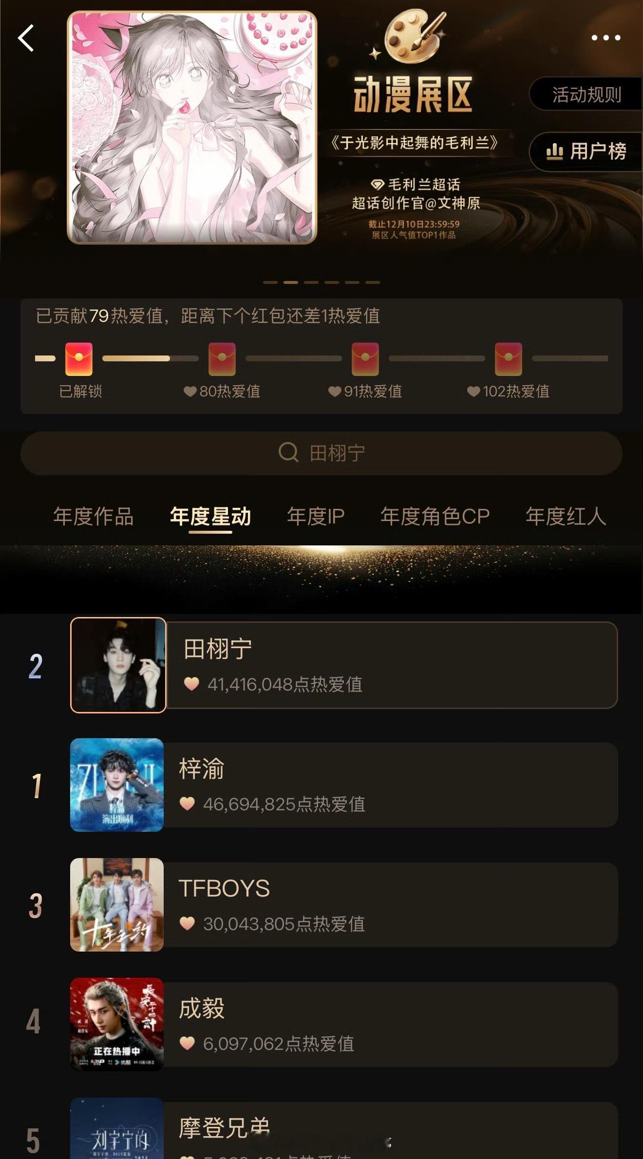 超话大赏第一阶段投票结果来了,梓渝、田栩宁、成毅、单人前三
