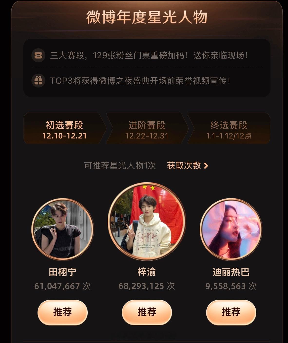 超话大赏第一阶段投票结果来了,梓渝、田栩宁、成毅、单人前三