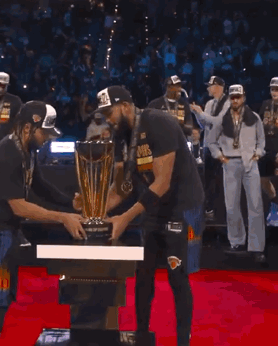 恭喜纽约尼克斯!哈特的肢体语言有意思!自1973年以来首次染指冠军杯,当然,这和NBA总冠军的份量还有很大差距。这样,尼克斯队可以获得50万美元的奖励,每位球员可以获得53万奖金,尤其是双向球员,最少也有9万左右,比他们的年薪60多万来得多。 马刺被逆转,文班亚马发挥一般,尽管有7人得分上双。不过,马刺队也能获得20多万的奖励。 布伦森获得MVP。