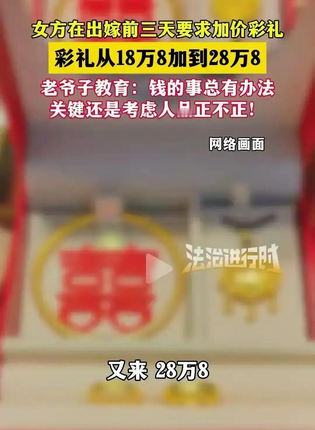 一对新人原定18万8彩礼,婚礼前三天女方家突然开口要涨到28万8,男方家当场愣住