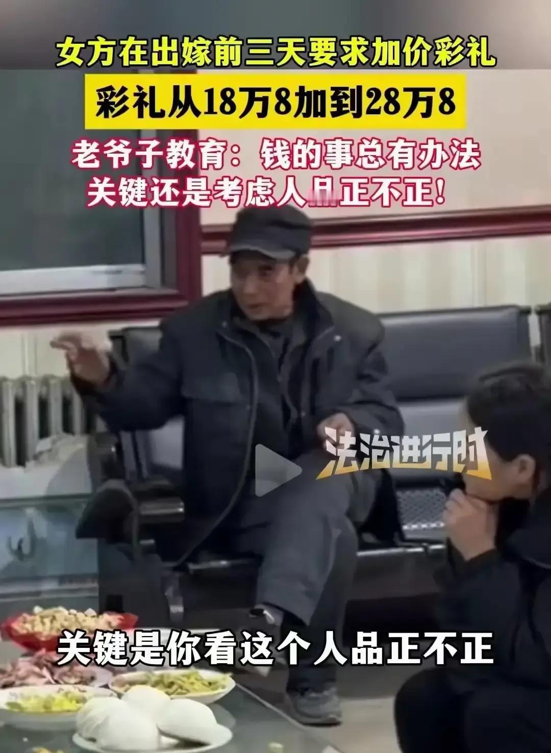 一对新人原定18万8彩礼,婚礼前三天女方家突然开口要涨到28万8,男方家当场愣住。 爷爷把孙子拉到一边:钱能再挣,人品坏了日子就塌了。 这话被亲戚录下来,一晚上全网刷屏。 评论区里有人骂女方坐地起价,有人担心男方被拿捏,更多人给老爷子竖大拇指,说这才叫明白人。 彩礼本来图个喜庆,临时加码等于把婚姻当买卖,谁心里不膈应? 真想过日子的,不会把账算到最后一分钟。 爷爷一句话把大家拉回常识:先看人品再谈钱,顺序不能反。 网友齐刷刷点赞,说家里要有这么一位长辈,能省多少弯路。 婚姻不是一锤子买卖,临时加价就是给感情埋雷。 愿年轻人都能碰上这种清醒长辈,也愿彩礼回归祝福,别再变味成谈判。