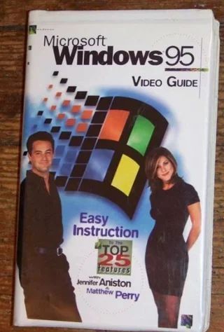 Windows95视频教程,由当时因为《老友记》爆红的珍妮弗·洛佩兹和马修·派瑞出镜讲解。