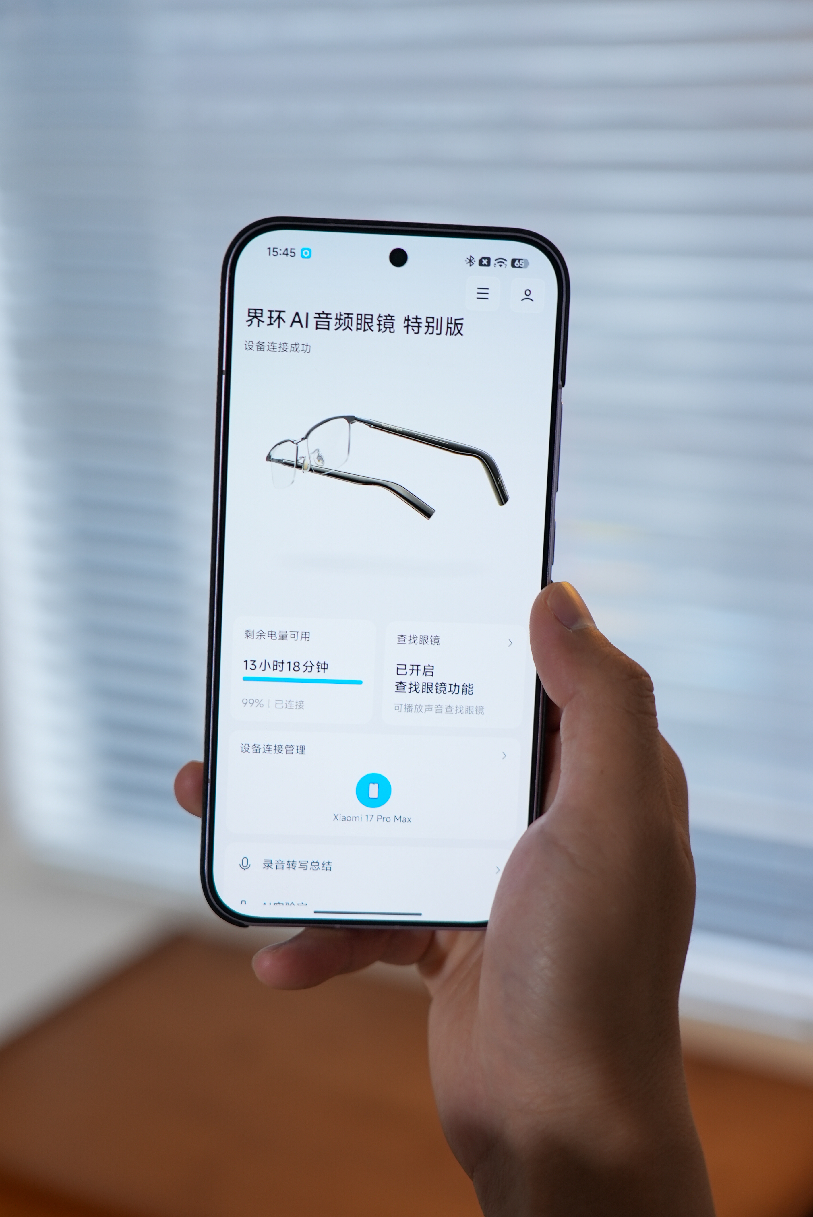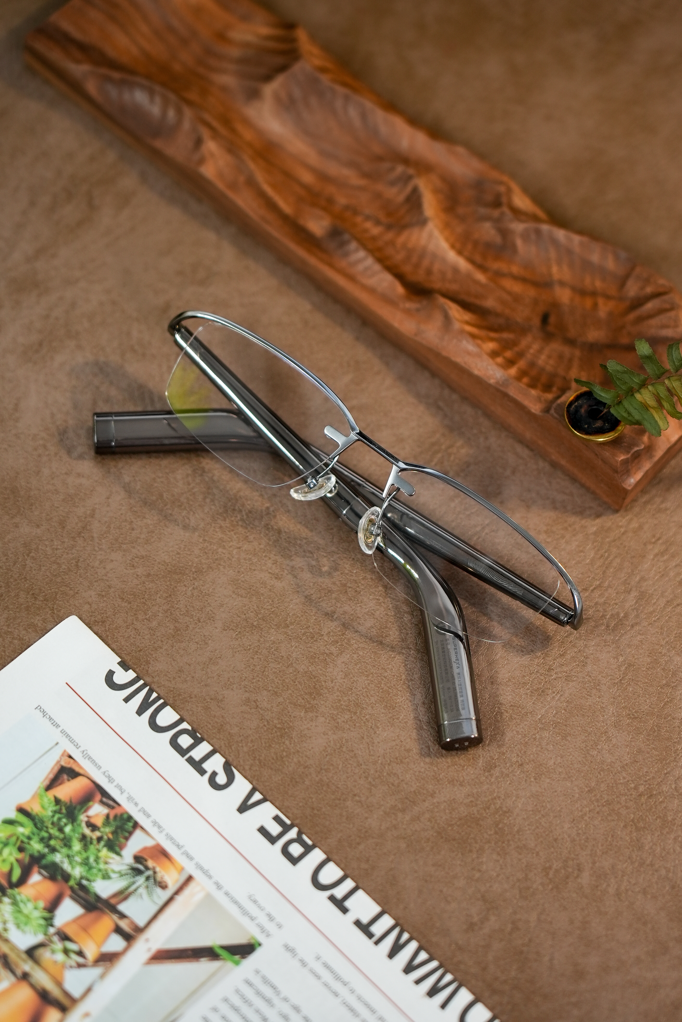「界环AI音频眼镜 特别版」看着很精致,钛金属镜框 + 蔡司镜片,轻到只有26.4g,戴起来没感觉比普通眼镜重多少。重点是这玩意儿的 AI 会议记录和同声传译竟然终身免费,妥妥的打工人最强辅助。加上14小时长续航,科技感和时尚感全拿捏了。有点东西