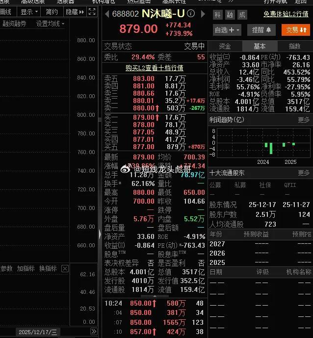太疯狂了!沐曦股份IPO上市首日爆炒,涨幅超750%,成交超80亿,股价逼近900元,市值超3000亿。比摩尔线程还疯狂。新股越疯狂,越是爆炒新股,市场越弱势。新股爆炒抽血流动性,两市超4000家下跌,2亿股民,给1家新股随礼。一边是新股爆炒的彩票效应,一边是老股泥沙俱下的亏钱效应,强烈的反差,越是这样,越加剧市场恐慌。弱势炒新,越疯狂,下跌中继级别越大。逻辑很简单,市场跌这么多,没有资金去低吸,抄底,反而去击鼓传花爆炒突击上市的新股,说明市场抄底没有性价比,主力,机构,量化,宁愿击鼓传花瞎炒,也不愿低吸。