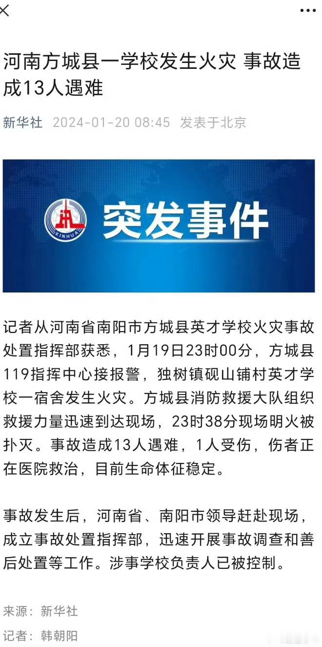 河南通报方城学校火灾事故调查结果这么久了,也算是给遇难者家属们一个交代了~前段时间刚刚看过相关的新闻报道,真的很痛心,这种寄宿小学很多是留守儿童,而且人员密度很高,学校这种地方应当是防火、防灾的重点单位,一点都马虎不得