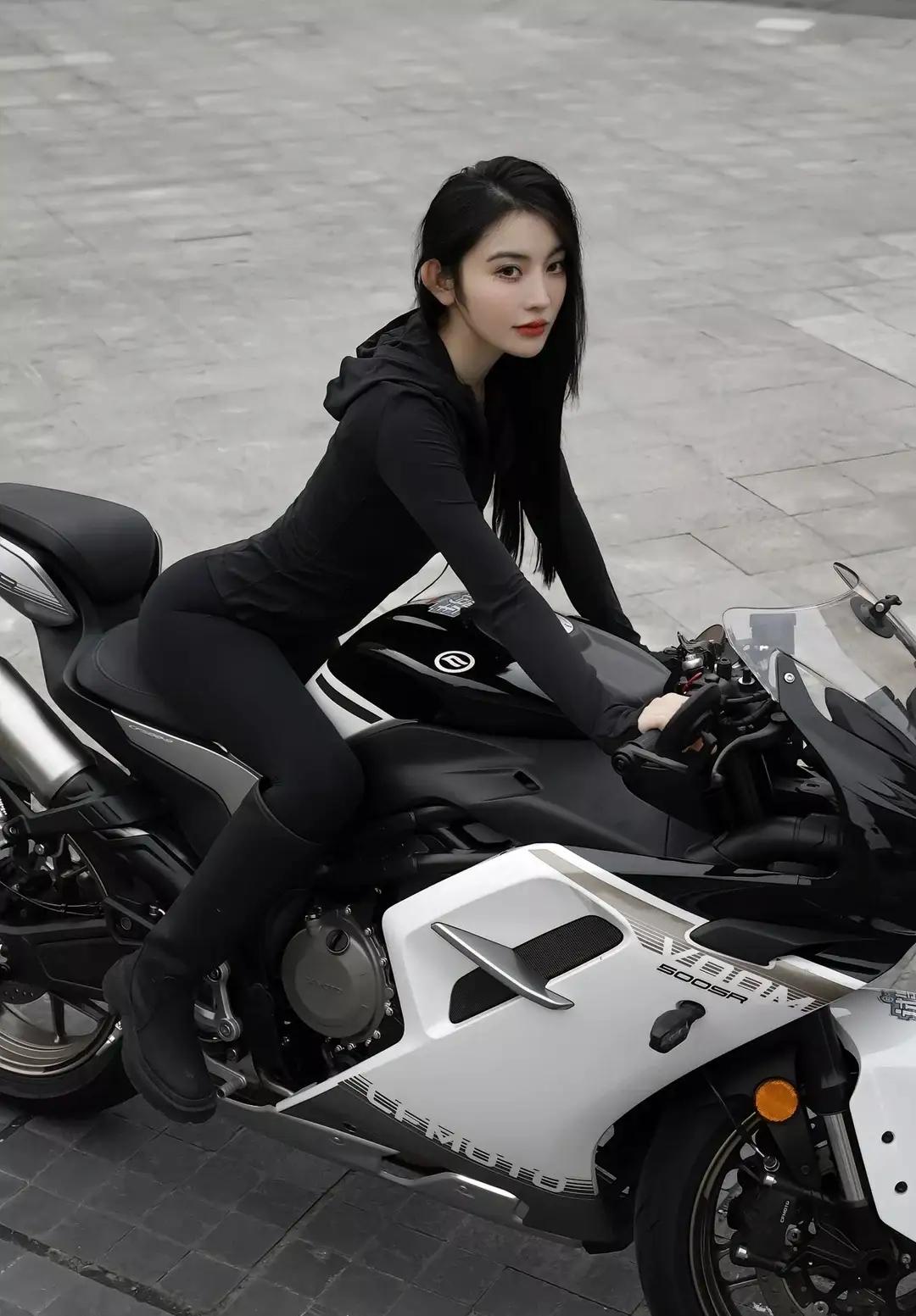 酷炫黑衣女骑手,驾驭炫酷机车,尽显时尚与自由!🏍️💁♀️