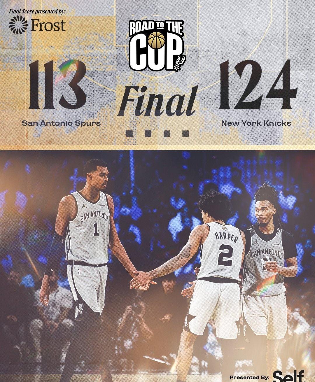 你刺第四节被米罗前板抢爆,关键时刻摆文班+四后卫进攻却没打出来,面对体型本就远优于联盟平均线的尼克斯侧翼,你刺直接被尼克斯一波流带走错失NBA杯冠军。 都说是年轻球队,但输球的方式总是如此熟悉:临阵调整过慢、篮板被爆等等 好好总结这一场的失利吧,从球员到教练,尼克斯都是更成熟的那一支球队。 马刺超话