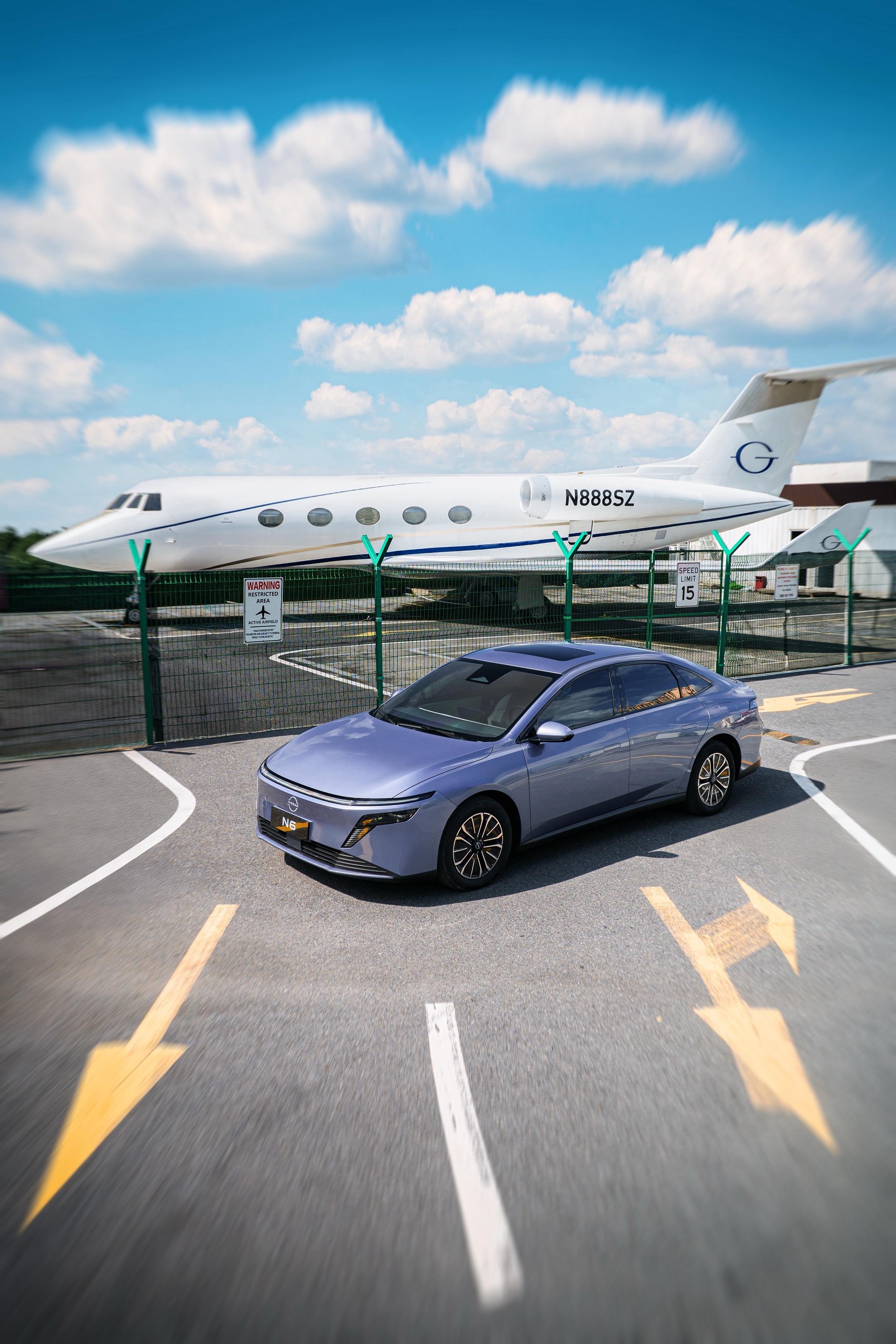 蓝天为幕、飞机为景,N6风弧式极简腰线与飞机的凌厉线条碰撞,随手一拍都是“陆地飞行器”VS“空中座驾”的视觉冲击效果!✈️