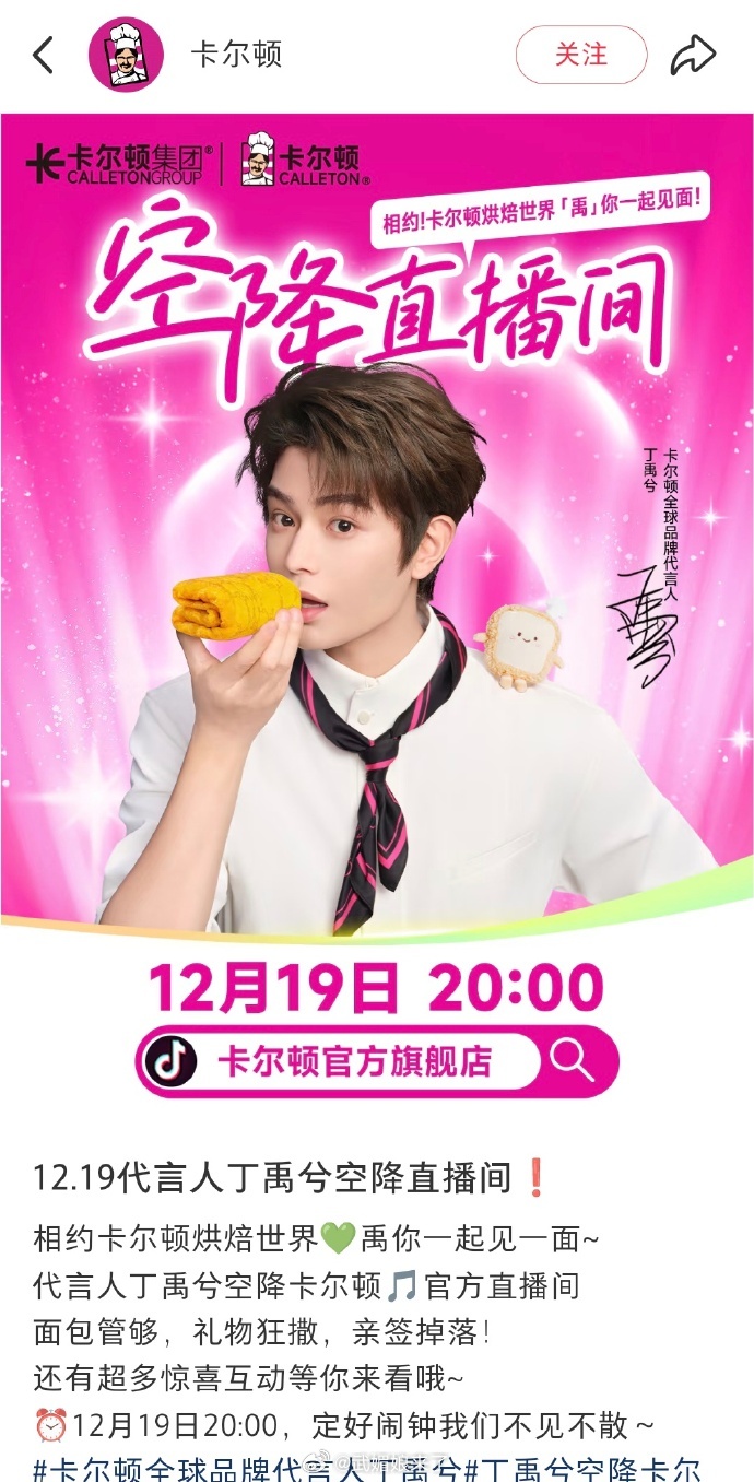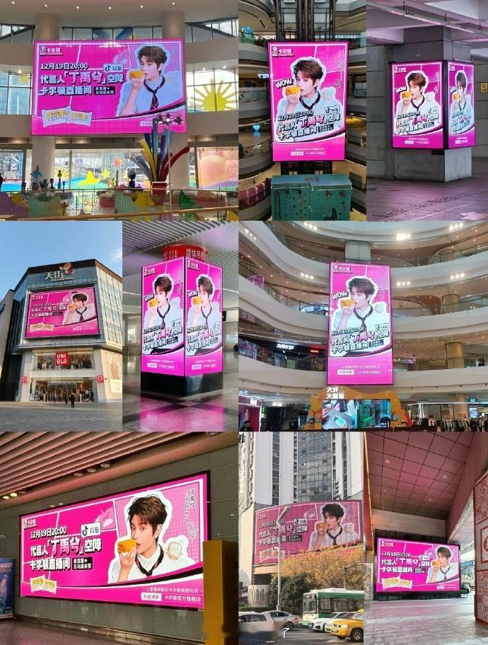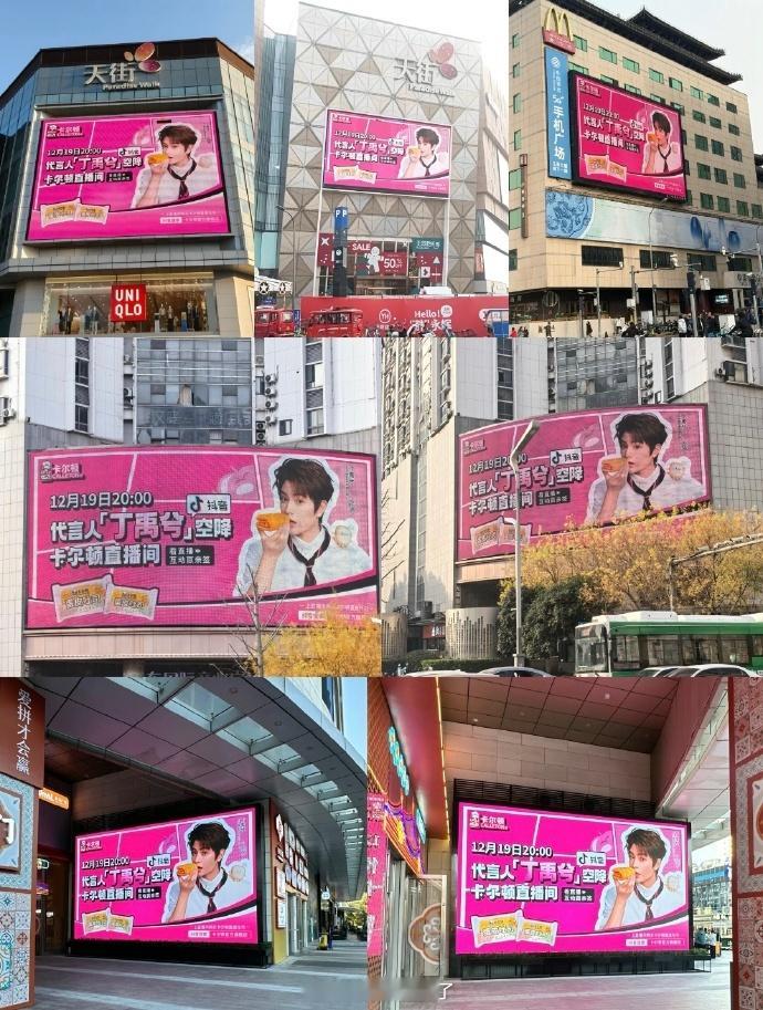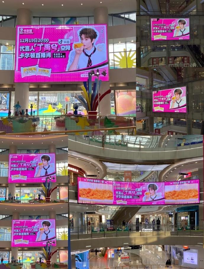 丁禹兮直播,品牌方直接把直播预告搬上全国15城30+块核心区域广告位大屏,全球代言人的排面👍