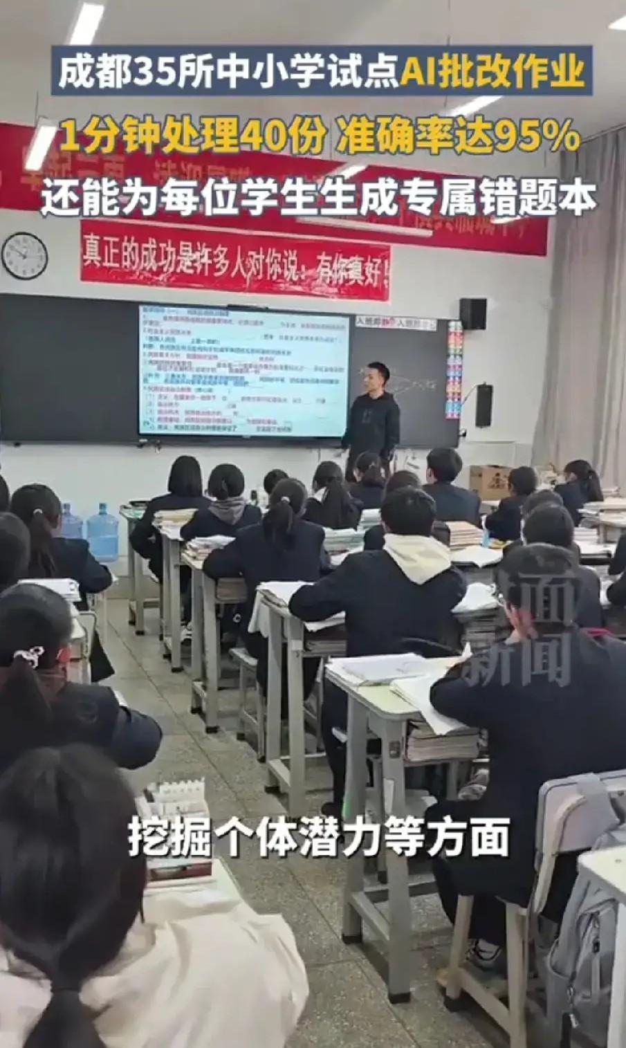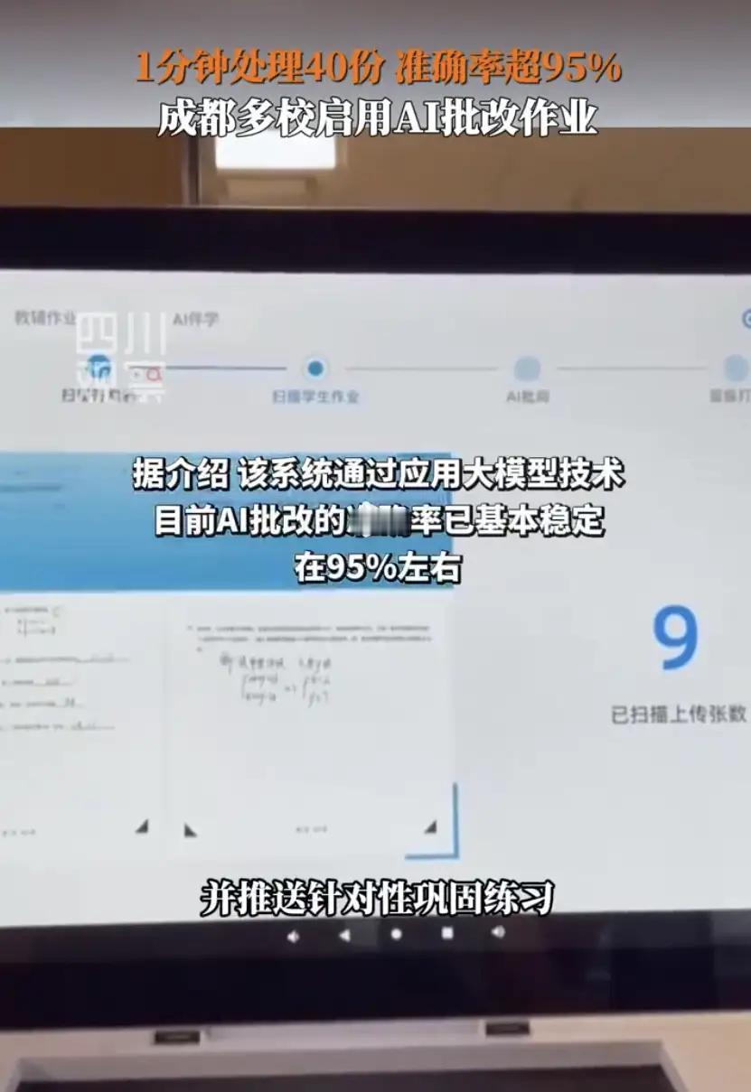 成都35所学校试点用AI改作业,据说准确率能到95%,这事儿挺有意思!让电脑帮老师批卷子,特别适合那些有标准答案的题,刷刷刷就改完了,老师能省下大把时间,不用再熬夜批作业,可以多花心思在备课和辅导学生上。 这95%准不准?客观题基本靠谱,但碰到学生字写得像天书,或者作文这种开放题,AI就容易蒙圈,还得靠老师最后把关。所以别担心AI取代老师,它就是个超级高效的助手,干点重复的体力活,真正判断对错、启发学生,还得靠有经验的老师。 以后全国推广可能性非常大! 现在国家政策在推教育数字化,技术也越来越成熟,省钱省力的好事谁不想?不过偏远地区设备、网络跟不上可能会慢点。未来课堂肯定是“人机搭配,干活不累”——AI负责快速批改、整理错题,老师专注教方法和育人,这才是科技赋能教育的正确打开方式!ai批改作业 ai辅导作业 Ai批改作⽂ ai作业检查