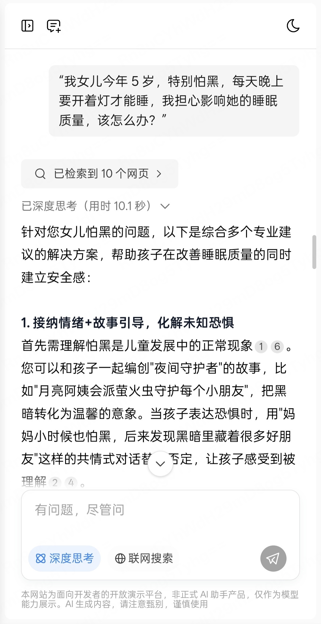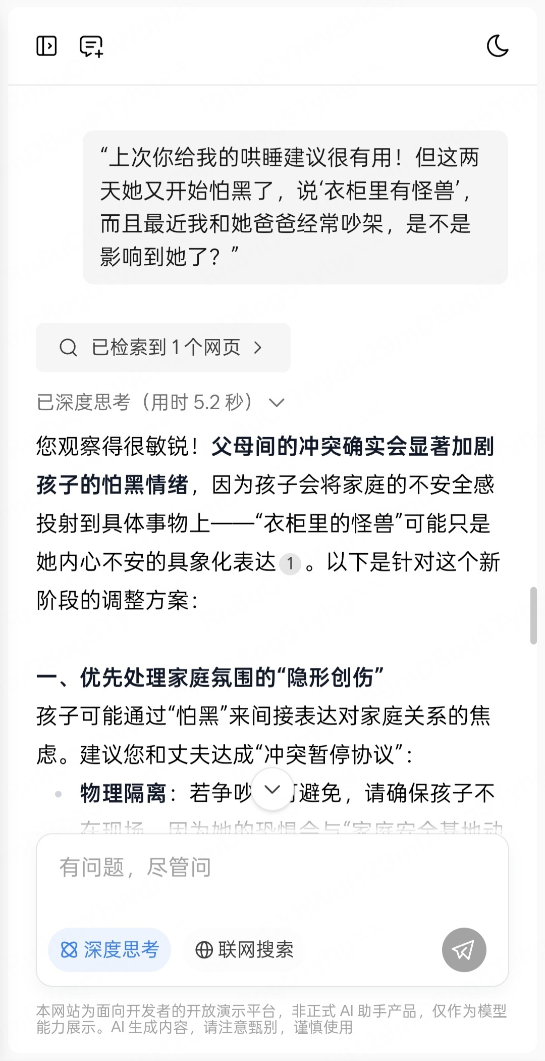 小米发布最新MiMo大模型小米的MiMo大模型已经开放体验了,支持深度思考和网页搜索从生成速度上来说,反应都挺快的,试了几个复杂问题,思考时间都在10秒上下而且回答的质量都挺高,对于一些事实核查非常严谨,在专业场景下,也有一定的实用性同时支持跨会话记忆能力,而且情商非常高,比如我模拟了一个小女孩怕黑和父母吵架的场景,它除了照顾孩子的情绪,也会安抚家长昨天晚上模型开源的时候,还有人在嘴硬参数没输过,现在放开体验了,动动你们的小手看一看,脸肿不肿