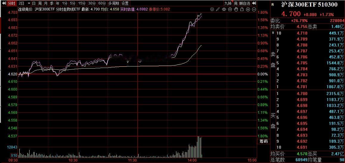 沪深300ETF(510300)近半小时成交超10亿元! 某某队开始上班了!