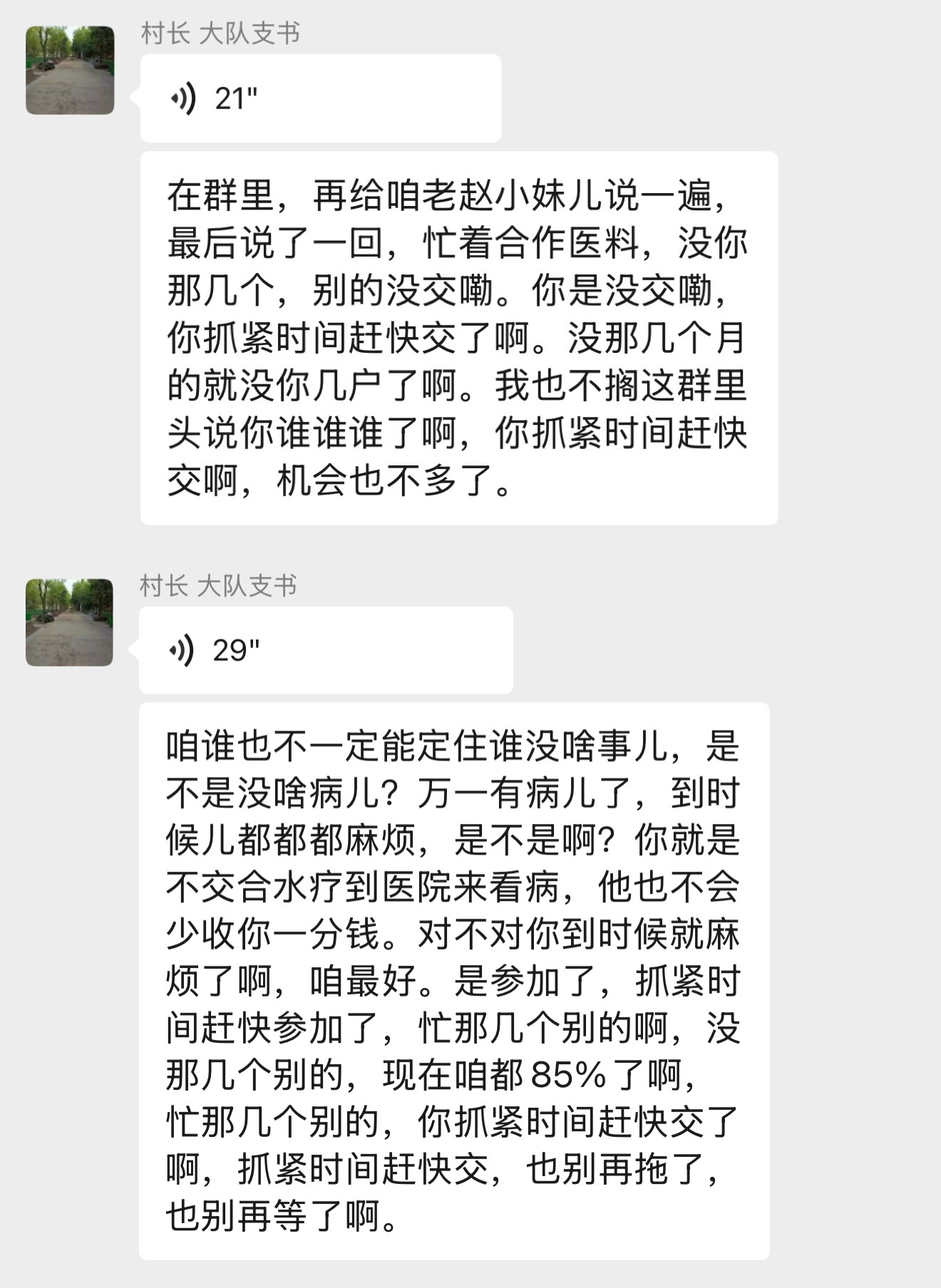 为什么很多村里的人,不愿意交农村合作医疗保险,400元1人,村长从10月份就在群里催村民缴纳,现在年底了,还剩余15%的村民没有交,村长着急了
