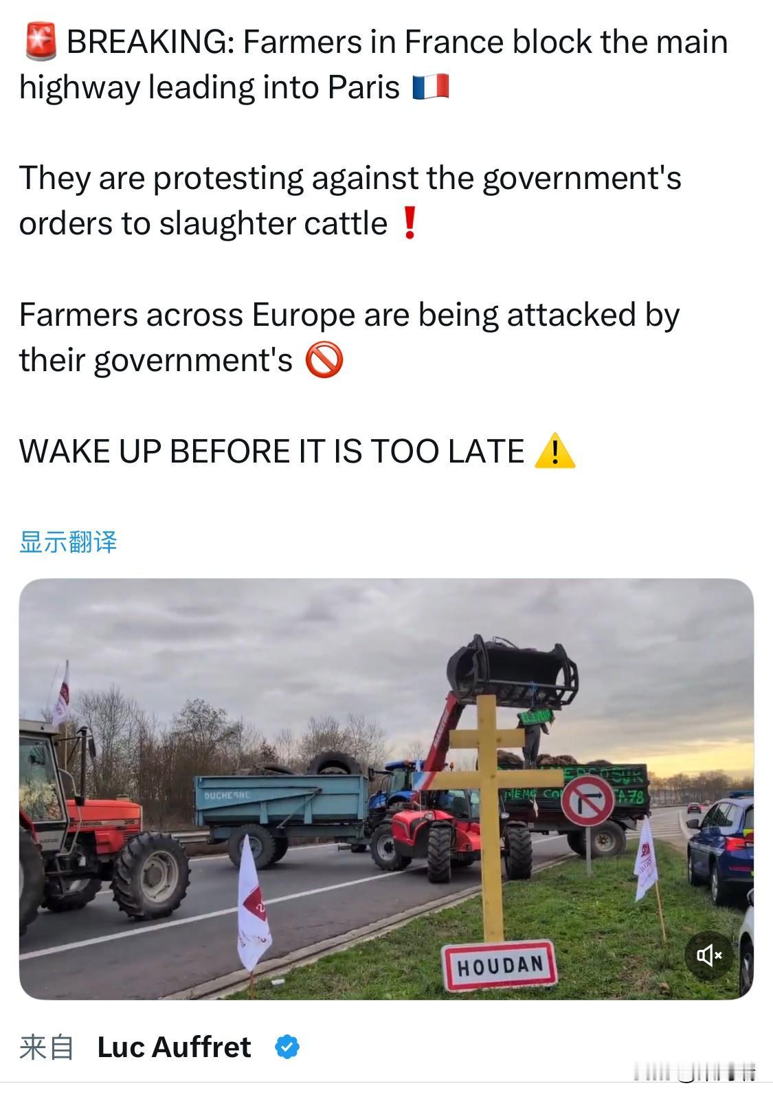 法国农民封锁进入巴黎的主要高速公路,抗议政府对感染结节性皮肤病 (LSD) 的牛群实施全面扑杀的命令。 农民们抗议政府的扑杀政策,并呼吁扩大疫苗接种范围,认为全面扑杀和有限疫苗接种的防疫政策是无效的。 截至2025年12月中旬,抗议活动仍在持续,全国多条高速公路受到影响,局势持续紧张。 政府扩大了西南部的牛结节病强制疫苗接种区域,但农民工会认为这还不够,并继续采取封路行动。