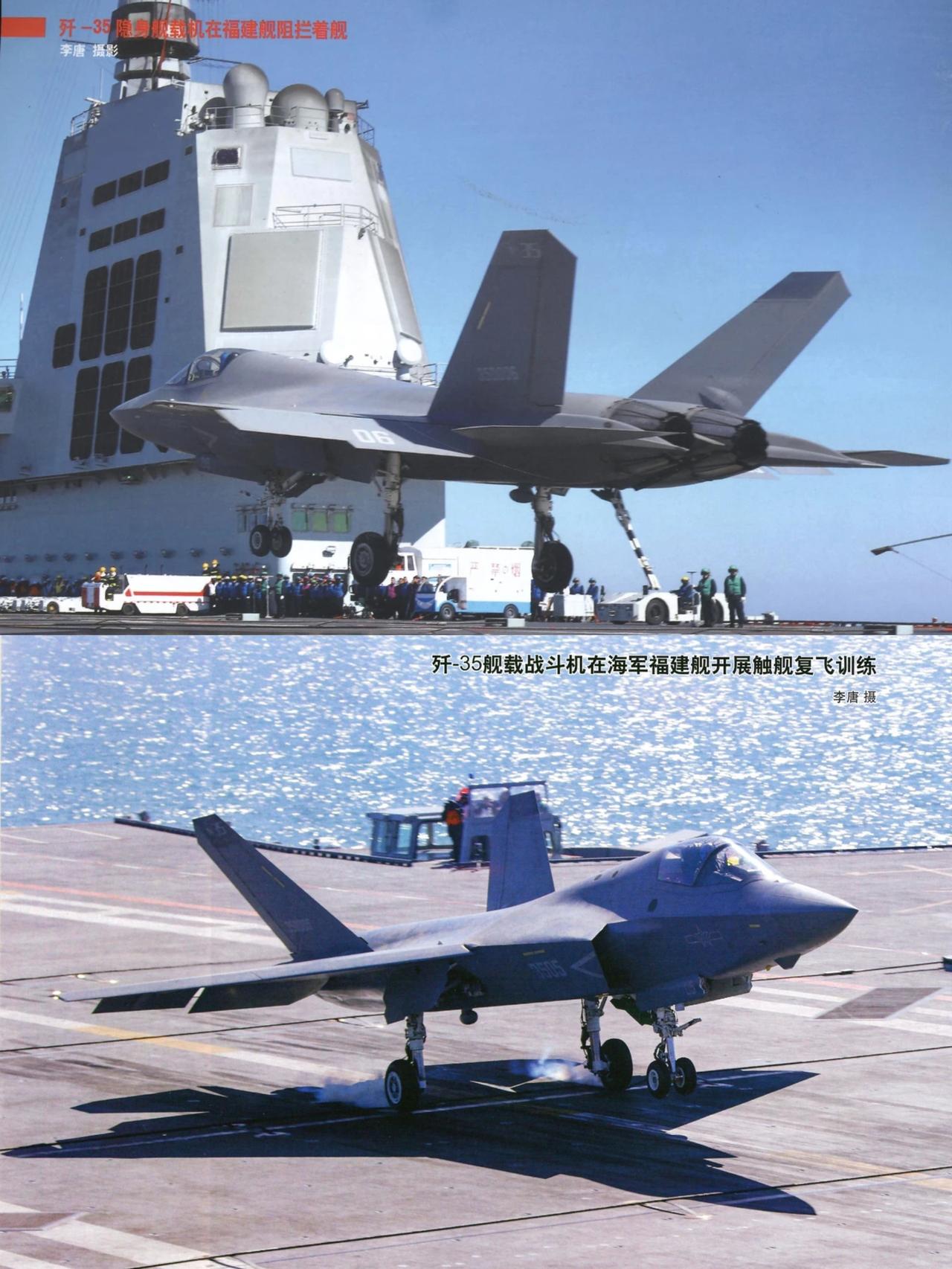 歼-35阻拦着舰-触舰复飞 阻拦着舰:放下起落架、襟翼与尾钩,按引导精准着舰,尾钩挂住福建舰电磁阻拦索,系统毫秒级匹配阻力,3秒内将时速200公里左右的战机刹停,滑行约百米,动能转化为电能与热能,适配舰载严苛工况。 触舰复飞:全油门触舰,机轮轻触甲板即推满油门,平尾下偏抬升机头,未挂索或异常时立即增速拉起,双发推力冗余保障安全复飞,是训练与应急的关键动作。