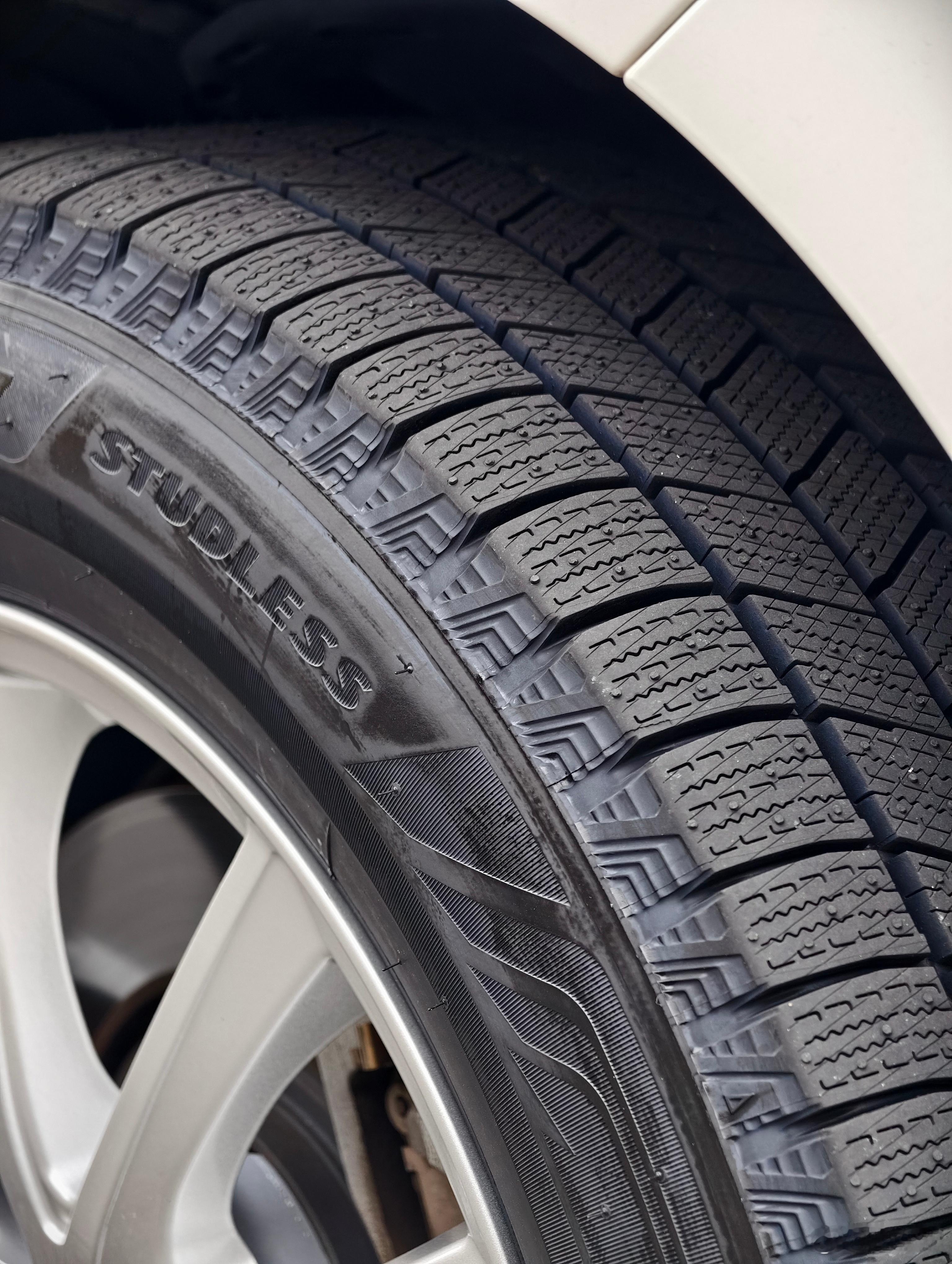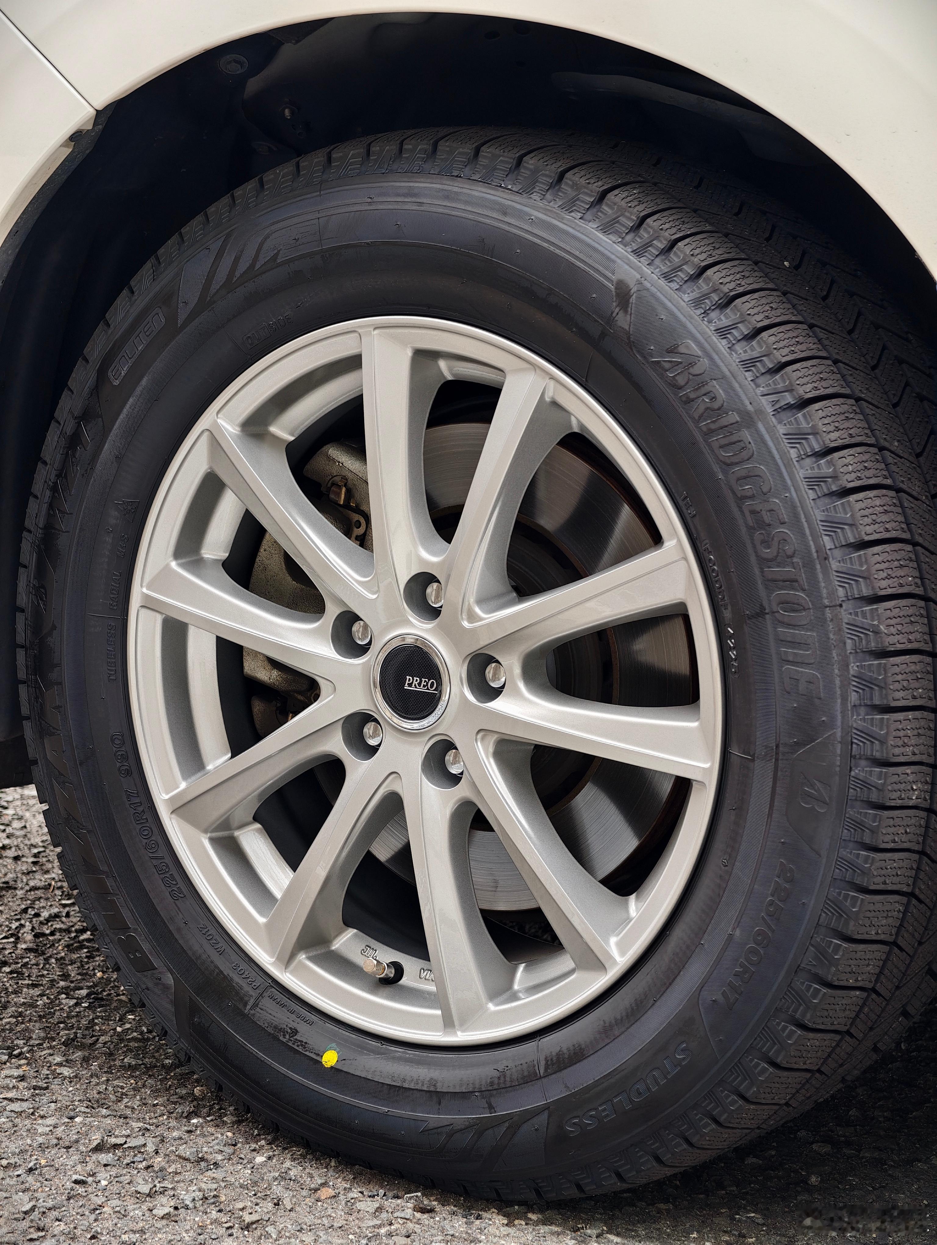 今天到轮胎店把之前订好的普利司通 BLIZZAK WZ-1 冬季胎装上了,暂时和夏季胎告别。按预约时间到店时,轮胎已经提前装好并完成了动平衡,现场只做拆装,全程不到半小时,效率很高。尺寸继续沿用原车规格 225/60 R17。轮圈选的是普利司通 PREO L5,亮银色十幅设计,装车效果干净耐看,也不显小。之前确实认真考虑过 size down,把 17 寸降到 16 寸,收一套原厂 16 寸轮圈,轮胎用原厂规格 215/65 R16。但后来店里查了原厂手册才确认,虽然 30 系埃尔法早期车型有原厂 16 寸轮圈,但 2021 年以后的后期款 3.5 V6 前刹车盘尺寸加大,16 寸轮圈已经无法避开刹车结构,最低只能使用 17 寸轮圈。这类涉及制动系统的改动,真不能凭经验或者网上信息想当然,必须按具体年款和规格确认清楚。轮胎本身选的是今年普利司通新发布的 WZ-1,属于 BLIZZAK 系列的新一代旗舰产品。相比上一代旗舰 VRX3,在冰面制动性能和转向稳定性上都有进一步提升,胎面采用发泡橡胶技术,在冰雪路况下的排水能力和抓地一致性更好。说到这里,也顺带聊一下最近在微博和小红薯上讨论很多的某品牌四季胎话题。北京的冬天,平均气温长期在 0℃ 以下,极端时甚至到零下十几度。从材料特性和实际工况来说,冬季胎几乎是刚需。但现实情况是,很多司机并没有形成冬夏分胎的使用习惯,甚至包括一些汽车领域的大 V。原因无非是车多、换胎成本高、嫌麻烦,于是选择在冬天“凑合”用四季胎,并把这种妥协当成经验推荐给别人。但在 0℃ 以下,无论是夏季胎还是四季胎,橡胶性能都会明显下降,制动距离、转向响应和抓地极限都会发生实质性变化。这不是品牌问题,也不是调校问题,而是材料物理特性决定的结果。在真正存在积雪和结冰路况的地区,四季胎夏天不够好,冬天又远不如真正的 studless 无钉雪胎,本质上就是一个妥协方案。在北京这样的气候条件下,反复强调四季胎“够用”“没问题”,确实容易误导很多普通司机。如果真开着四季胎去山里、去滑雪场,一旦遇到未清雪或压实冰面,风险非常高。我觉得要换,就老老实实换无钉雪胎,单独准备一套轮圈,冬夏分开用。要么就忍着下雪天不开车。指望一条轮胎四个季节都表现完美,既要又要,本身就不现实。大v聊车