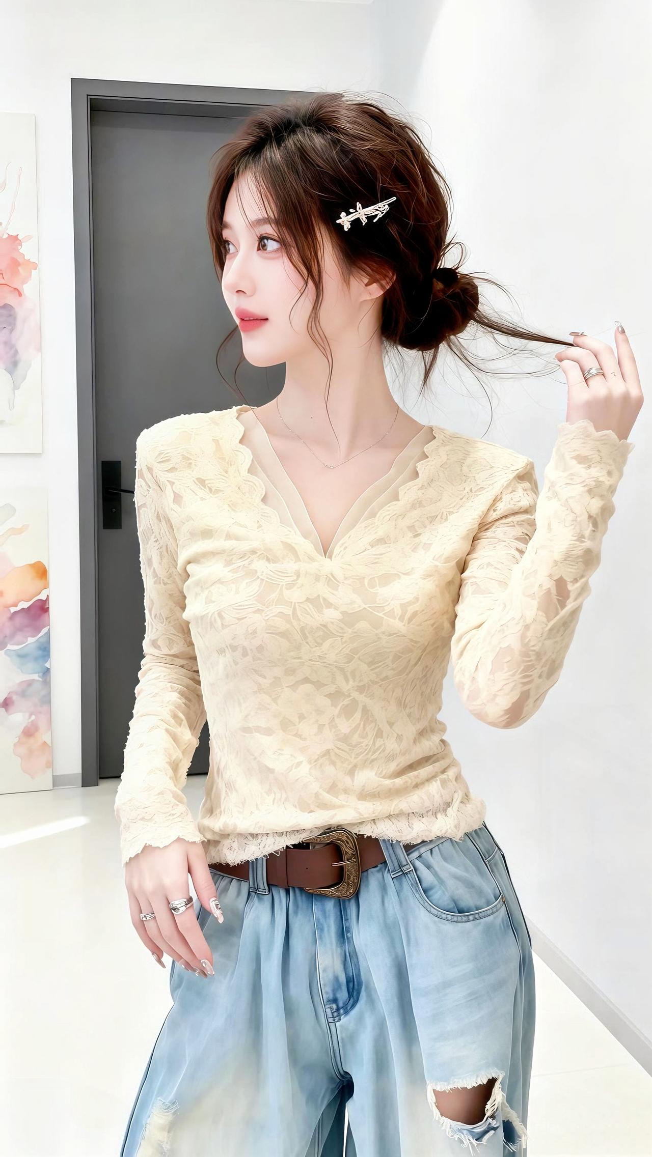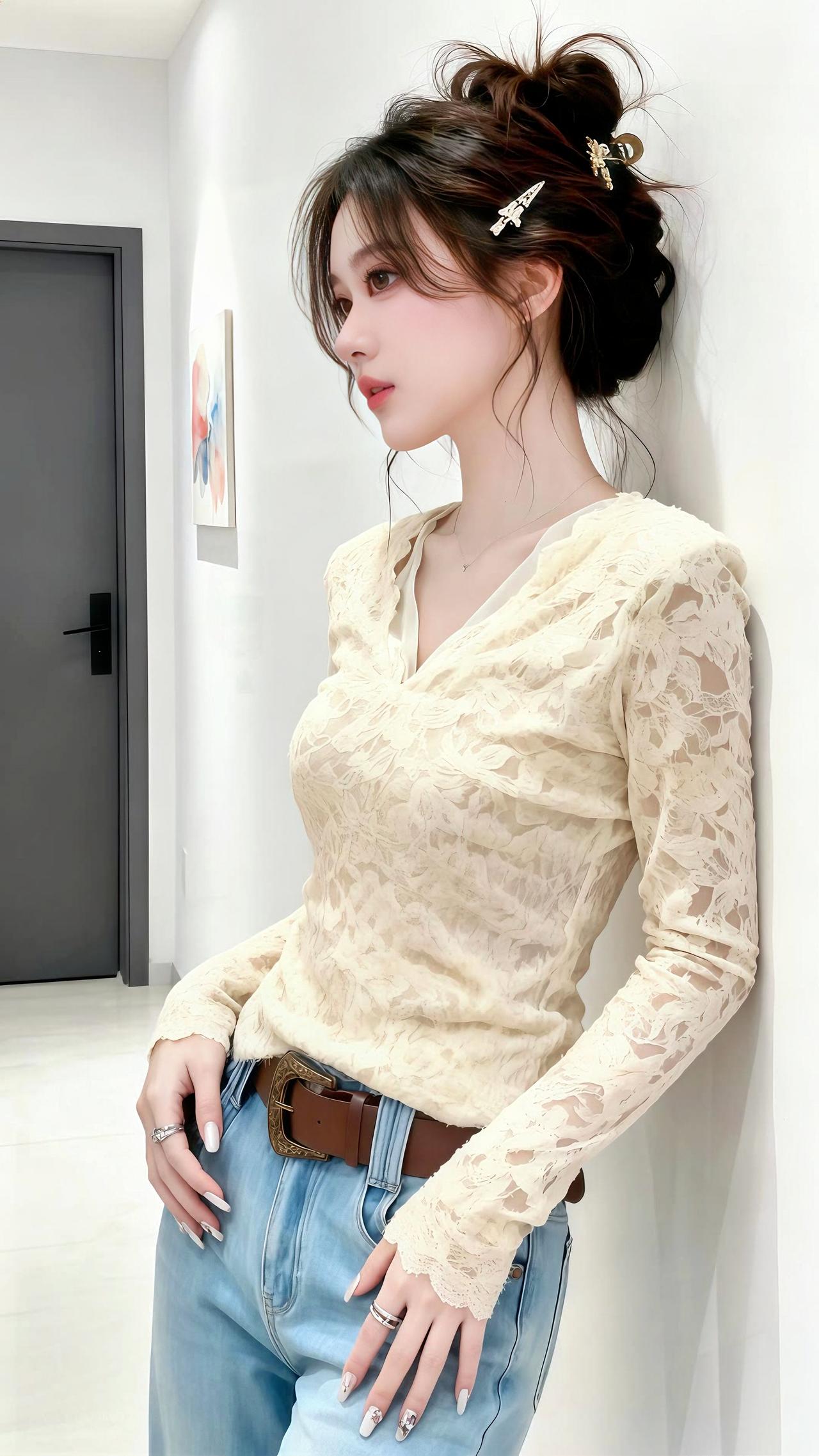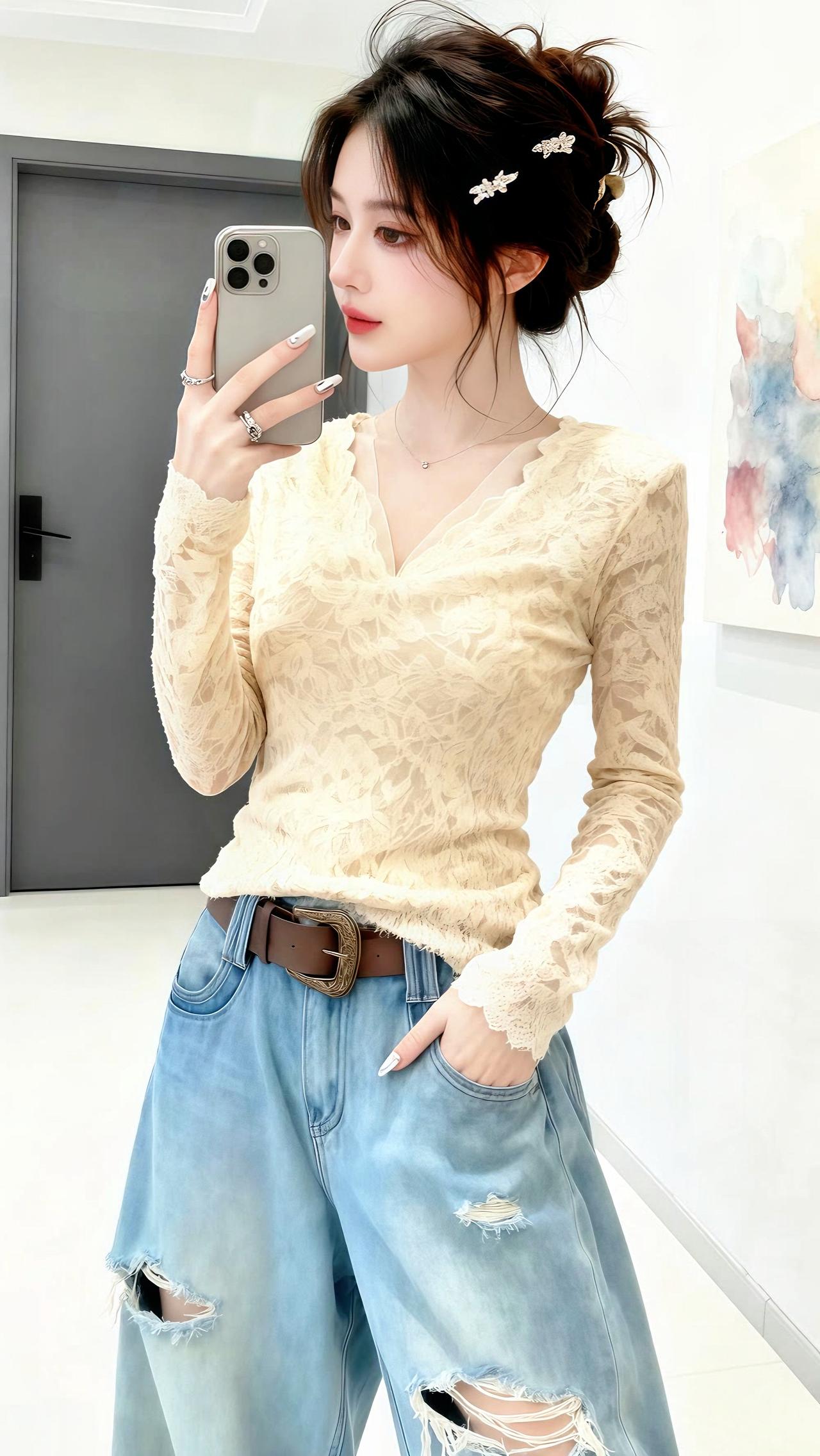 温柔蕾丝衫搭配复古牛仔裤,优雅气质满满!💕