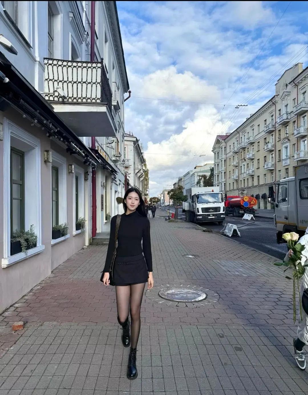 时尚穿搭指南:米色卫衣+黑色丝袜+酷炫靴子,轻松出街!