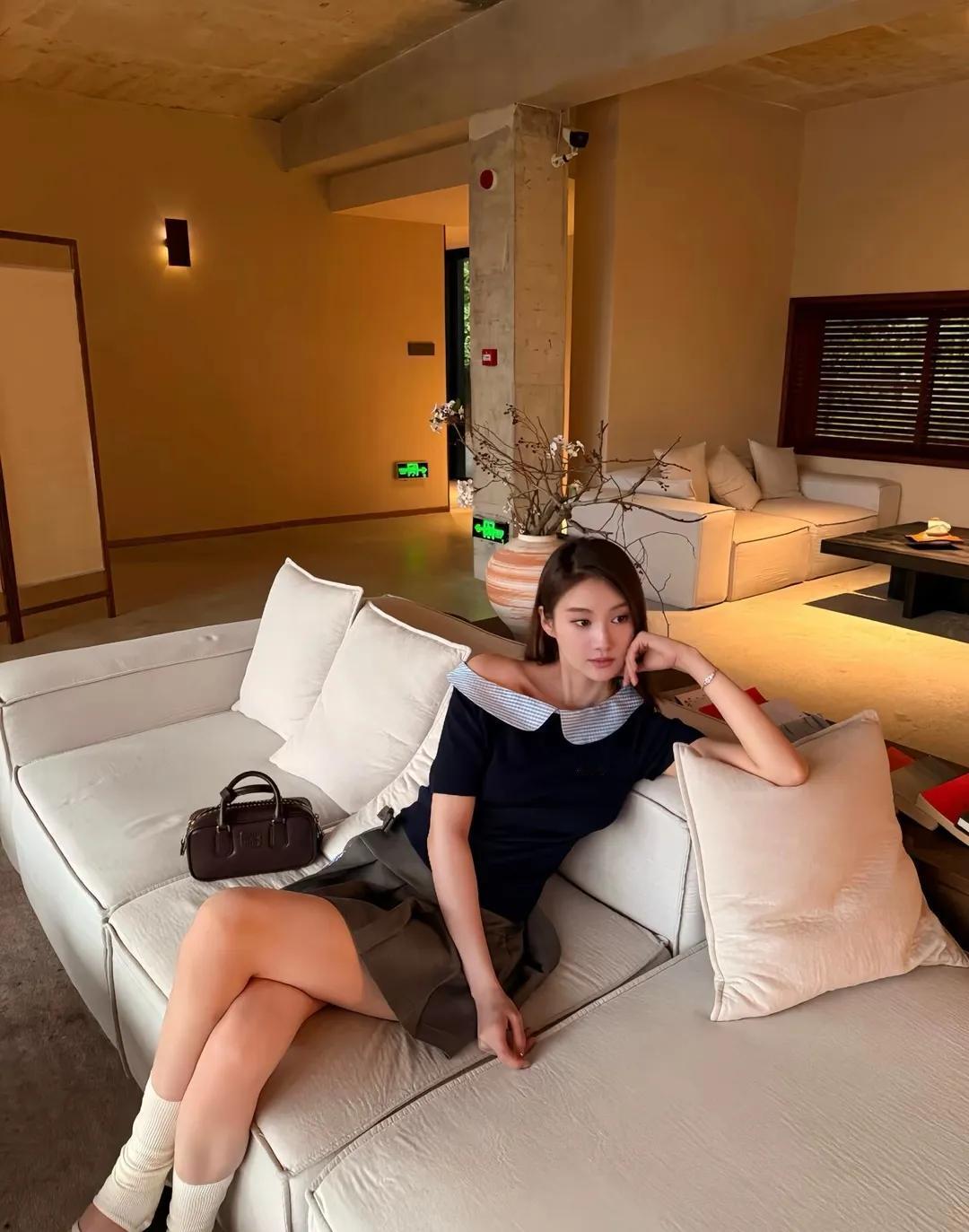 驼绒裹着暖的柔,金标碰碎轻的光。笑涡里浸了点甜,连沙发的软都成了春的形状。温婉