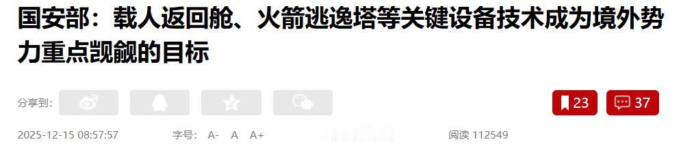 航天安全不容小觑!2025年12月15日,国安部披露载人返回舱等关键设备成境外势