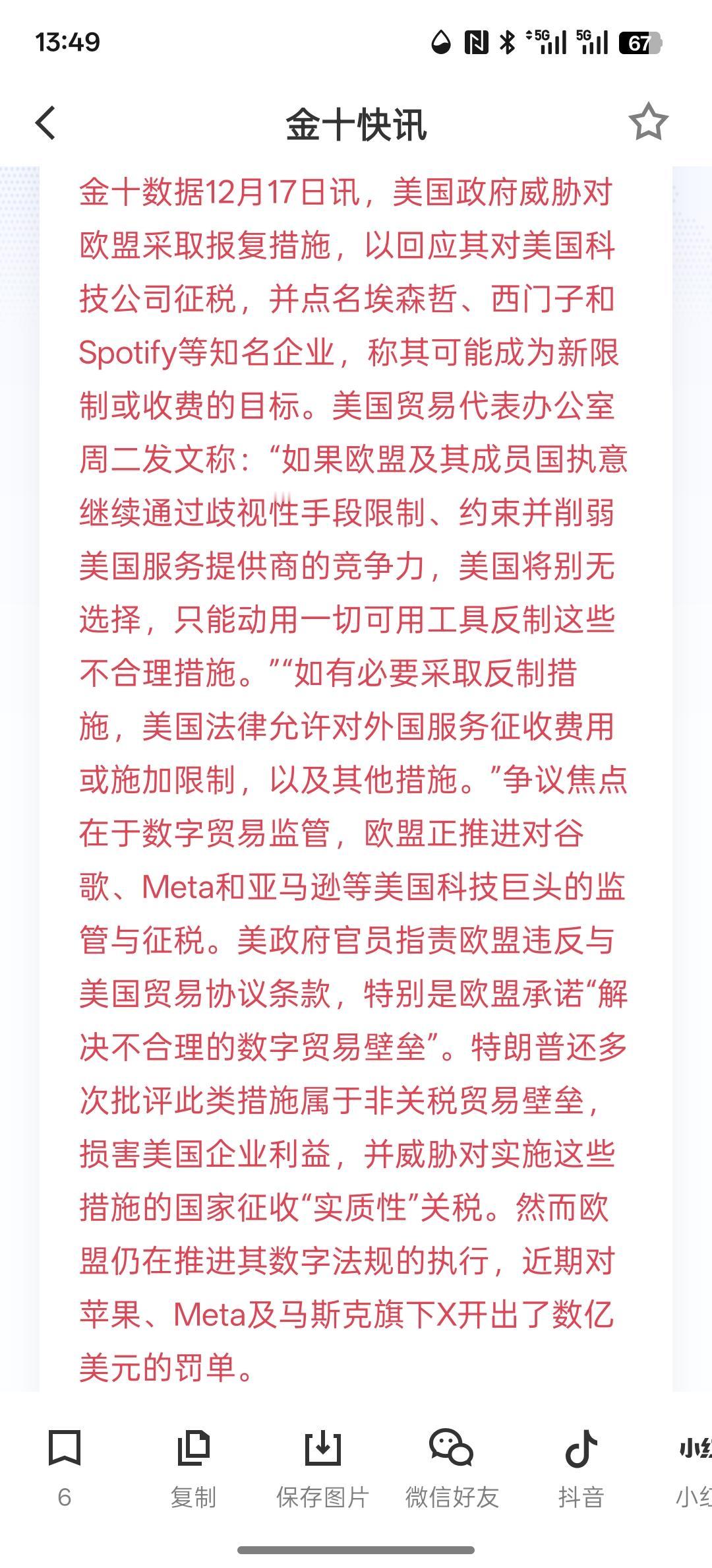美国威胁拟对欧盟公司就数字税问题采取反制,接下来就看美国能不能付出行动对欧洲搞反制措施,最近,欧洲对美国企业开始开罚单加税收,对马斯克开了一亿多的罚单,之前对苹果公司也开罚单!欧洲准备对美国多家科技巨头公司增加关税!现在欧洲要继续推动数字税,现在特朗普也非常恼火!欧洲违反了贸易协定!估计接下来双方可能会有所交锋!就看欧洲会不会强硬!欧洲强硬的话,特朗普肯定不服气,肯定要对欧洲下手!美国人的眼中,欧洲就是美国保护的对象,现在欧洲反过来要对美国企业下手,美国这能受得住?