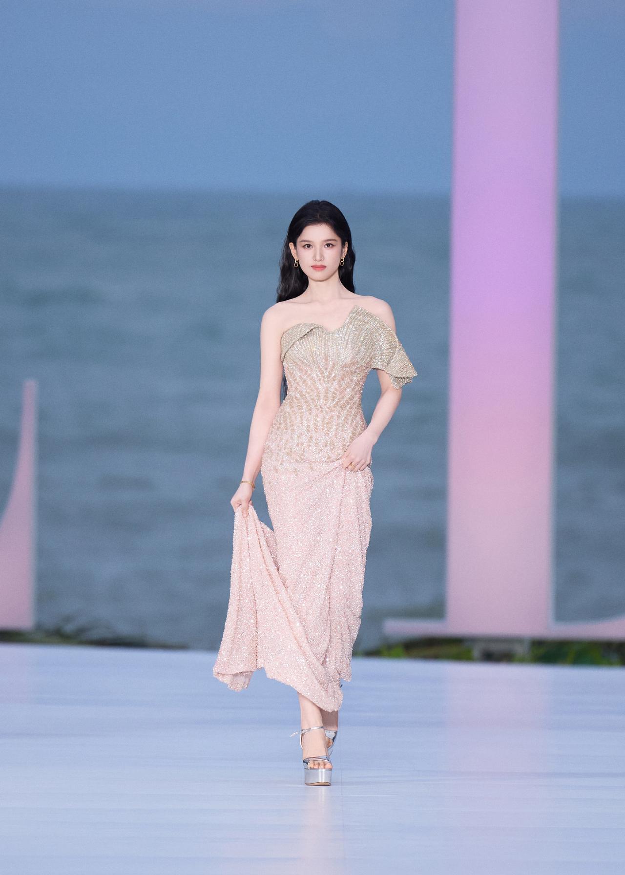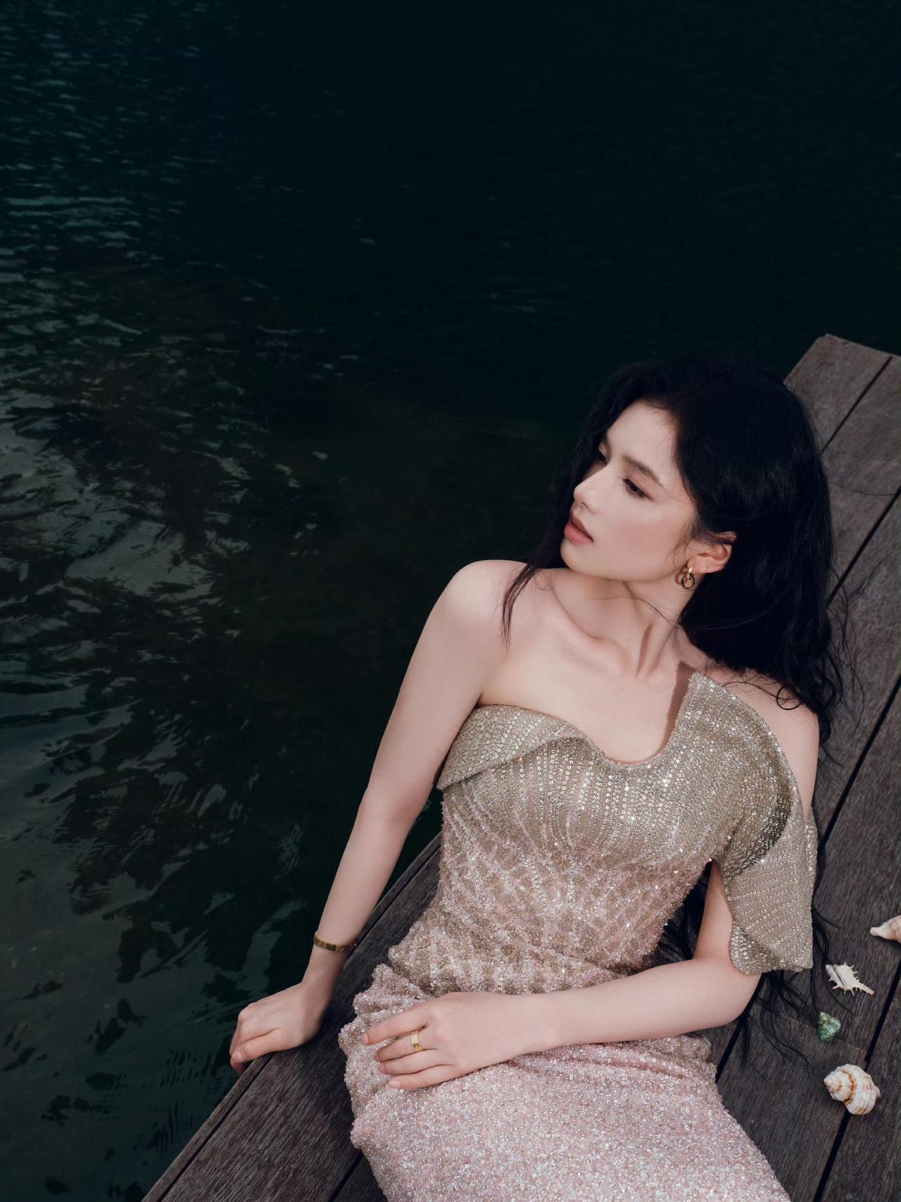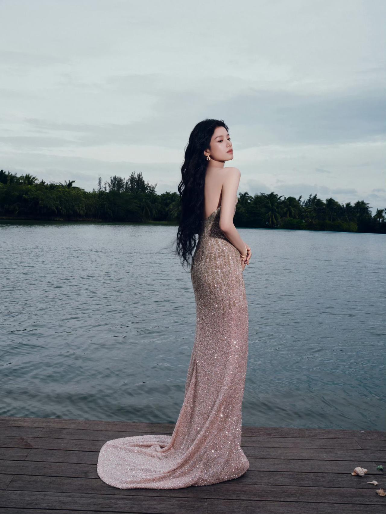 张婧仪,颜值清丽,气质优雅,一袭礼裙更衬得温婉大气,如星光下的优雅精灵。
