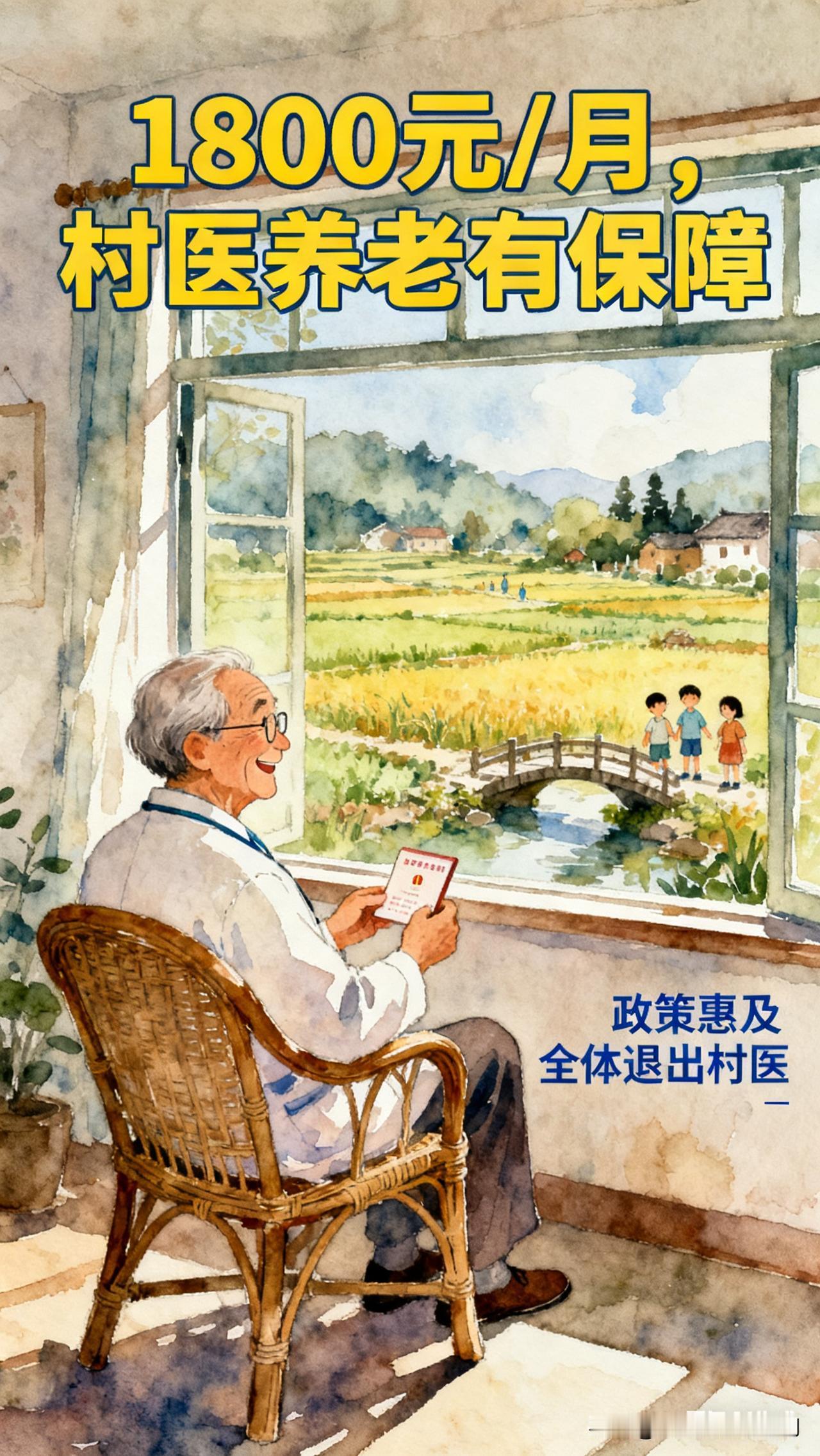 1800/月,退出村医养老标准,定了! 当一个个背着药箱,走遍乡野阡陌的身影渐渐老去,他们的晚年安养,终于有了稳稳的答案——近日多地明确,退出村医每月1800元的养老标准落地,这张姗姗来迟的“养老保单”,暖了几十万村医的后半辈子。 村医是悬在乡村头顶的“健康伞”,他们踩着露水上山,披着星光返程,把最便宜的药、最实在的诊脉,留给了最偏远的乡亲。但曾几何时,“老了怎么办”是压在这群人心里的石头:干了大半辈子的营生,没编制、缺保障,不少人干到六十岁,还在为每月的生活费发愁。河南的周桂英当了38年村医,从前每年要攥着6000多块血汗钱交社保,“就怕哪天动不了,连个看病的钱都没有”;山东菏泽的王建国干了32年村医,曾经身边的同行,四十多岁就因为养老问题改了行,他也无数次动过离开的念头。 而现在,这1800元的养老补助,成了他们晚年的“定心丸”。 这不是一张单薄的支票,是给村医半生付出的“结算单”。厦门最先把这个标准落到实处,明确到龄退出的村医,财政每月发放1800元养老生活补助,加上城乡居民养老保险的基础养老金,不少退休村医每月能拿到近2000元的稳定收入;河南的周桂英成为新政的首批受益者,退休第一个月就领到1860元养老金,她把银行卡放在贴身的口袋里,“这比从前看病的收入还让人安心”;山东菏泽的王建国算了笔账,现在政府帮着交社保,每年能省下四千多,他终于敢跟儿子说,“以后不用操心我养老”。 这1800元的背后,更是国家对“乡村守门人”的郑重承诺。从2021年国家提出“到2025年基本解决乡村医生养老问题”的目标,到各地政策的陆续落地,村医养老正在从“个案救助”变成“制度保障”:在岗的村医,政府协助缴纳养老保险,服务满20年还能领专项补助;超龄离岗的村医,有工龄补助叠加基础养老金;即便是没能参加职工养老的村医,也能拿到定额的生活补助。在河南项城,新政实施后,村医转行率从20%降到了5%,还吸引了12名年轻医生加入——当村医不再怕“老无所依”,才有年轻人愿意接过药箱,守好乡村的健康门。 这1800元,也是给乡村医疗的“接力棒”。我们总说“乡村不能没有村医”,但留住村医的从来不是情怀,是看得见的保障。现在这笔养老补助,让更多年轻的医学院毕业生愿意走进村卫生室,让干了一辈子的老村医,愿意留在卫生室带徒弟。周桂英退休后每天还泡在卫生室里,带着两个年轻村医认药材、看常见病;王建国现在每周都去留守老人家里走访,他说“现在不用愁养老,就想多给乡亲们多守几年”。 乡村的风里,终于不再飘着村医的叹息。这1800元的养老标准,不是终点,是起点——它让我们看见,那些曾被忽略的“小人物”,也能被时代稳稳接住。而那些背着药箱的身影,终于可以放下担子,好好看看乡村的晚霞。