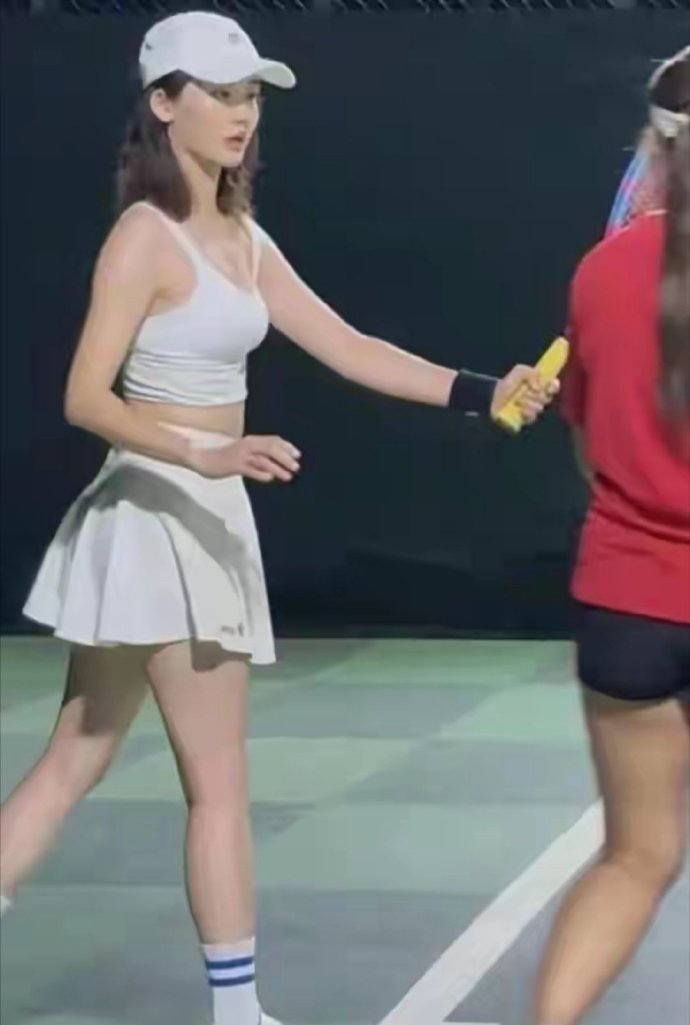 郑恺和老婆晚上去打网球,苗苗露腰又露腿,身材太好了,皮肤好白