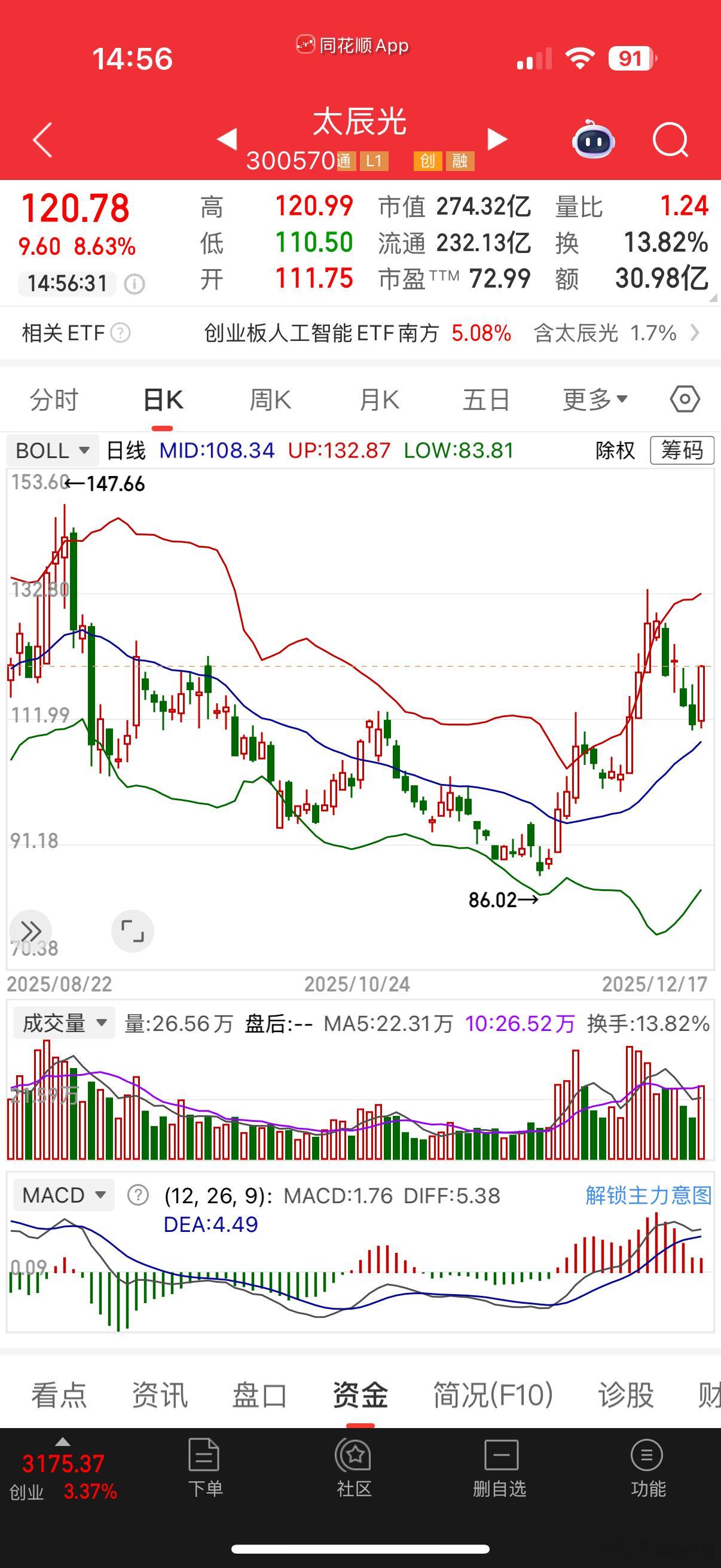 CPO才是创业板的支柱,太辰光关注了均线之撑