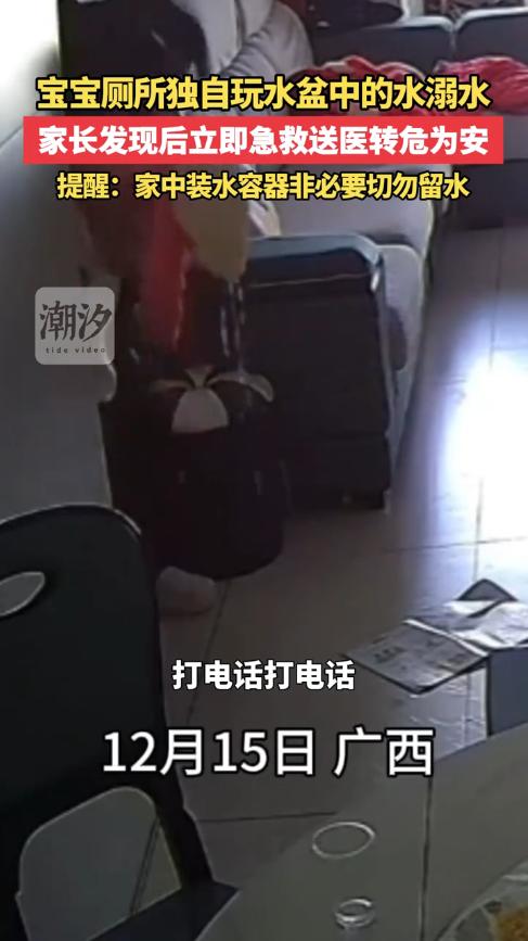 “心不是一般的大!”12月15日,广西玉林,一1岁女娃独自在卫生间玩水,结果不慎掉进水桶中,很快溺水陷入昏迷,妈妈一直没看到孩子,就满屋子寻找,不料,打开卫生间的门后,却看到孩子漂在水里一动不动!网友:三个大人看不住一个孩子? 带过孩子的应该都知道,小孩子非常调皮,常常一不注意,就不知道跑到哪里去了,所以家长看孩子时,一定不能让孩子长时间脱离视线。 当天上午,女子、婆婆和小叔子吃过饭后,就开始各忙各的,没有注意到小女孩偷偷跑进了卫生间。 过了一会儿,女子察觉到孩子不见了,于是在家里寻找,最终在卫生间里找到了女儿,孩子掉进了水桶里,全身湿透,脸色泛白,已经陷入昏迷中! 女子瞬间就慌了,抱着孩子让小叔子快点叫救护车,听到消息后,小叔子立即跑出去按了电梯并打给“120”,女子在简单拿了衣服后就抱着孩子下楼了。 万幸抢救得及时,孩子脱离了生命危险,并没有什么大碍。 经历了这件事,女子也是非常的后悔,没能好好的看住孩子,这是她作为一名母亲的失职,以后一定会加倍注意。 网友看后表示,不得不说这一家人的心都太大了,那么大的孩子没了这么长时间,都没有人发现吗?以后可不能再这样了! 信息来源:《1岁幼童在卫生间玩水时溺水 宝爸回应1岁娃在家中水桶溺水:还好孩子没事 抢救后目前身体各项体征正常》荔枝新闻