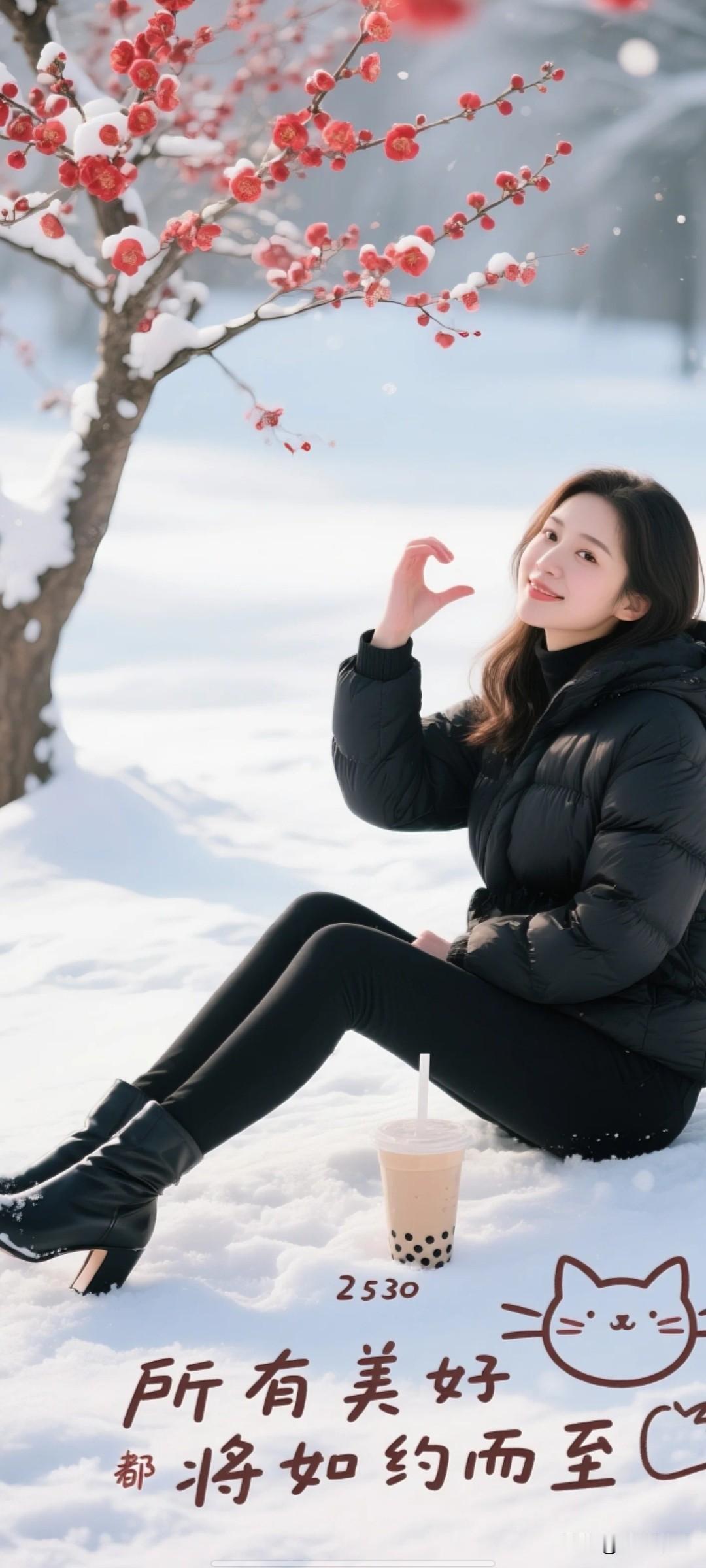 雪中红梅笑,心随爱意开。