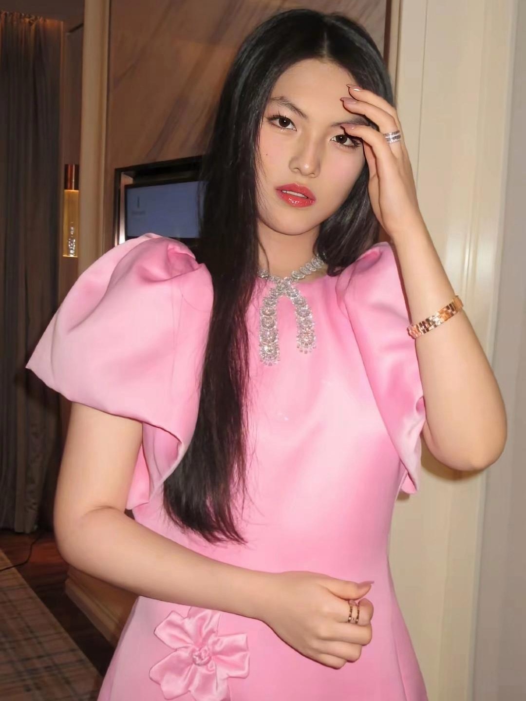 王诗龄晒回国第一场活动,穿一套芭比粉泡泡袖礼服亮相,眼神里带着几分精明,看起来像30岁左右的成熟女士。妆容加上首饰,衬托得她贵气、优雅,自信集于一身,气场一点不输李湘,母女俩可谓是一个模子里刻出来的。英国学校那边放假一个月,李湘又给女儿安排了应酬活动,习惯了公开场合,王诗龄已经变得很从容,整个人很放松,甚至有点欣赏自己的美貌了,拍照的时候和女明星神态很相似,李湘心里应该很满意吧!