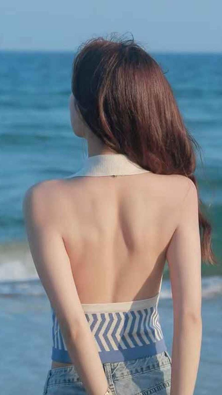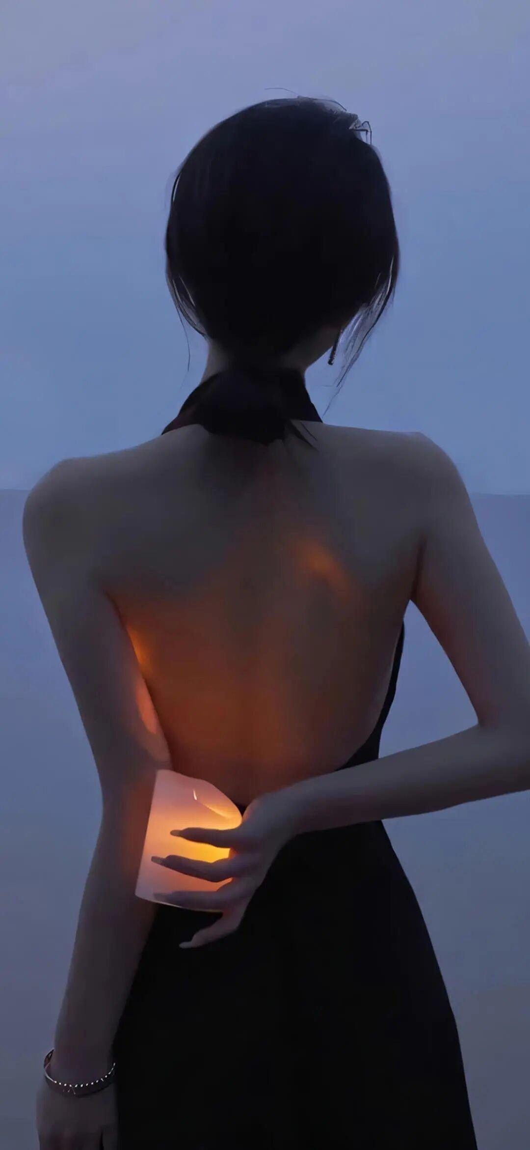 她的后背像一弯被月光打磨过的瓷,肩胛骨在肌肤下轻轻起伏,仿佛两片欲飞未飞的鹤羽。