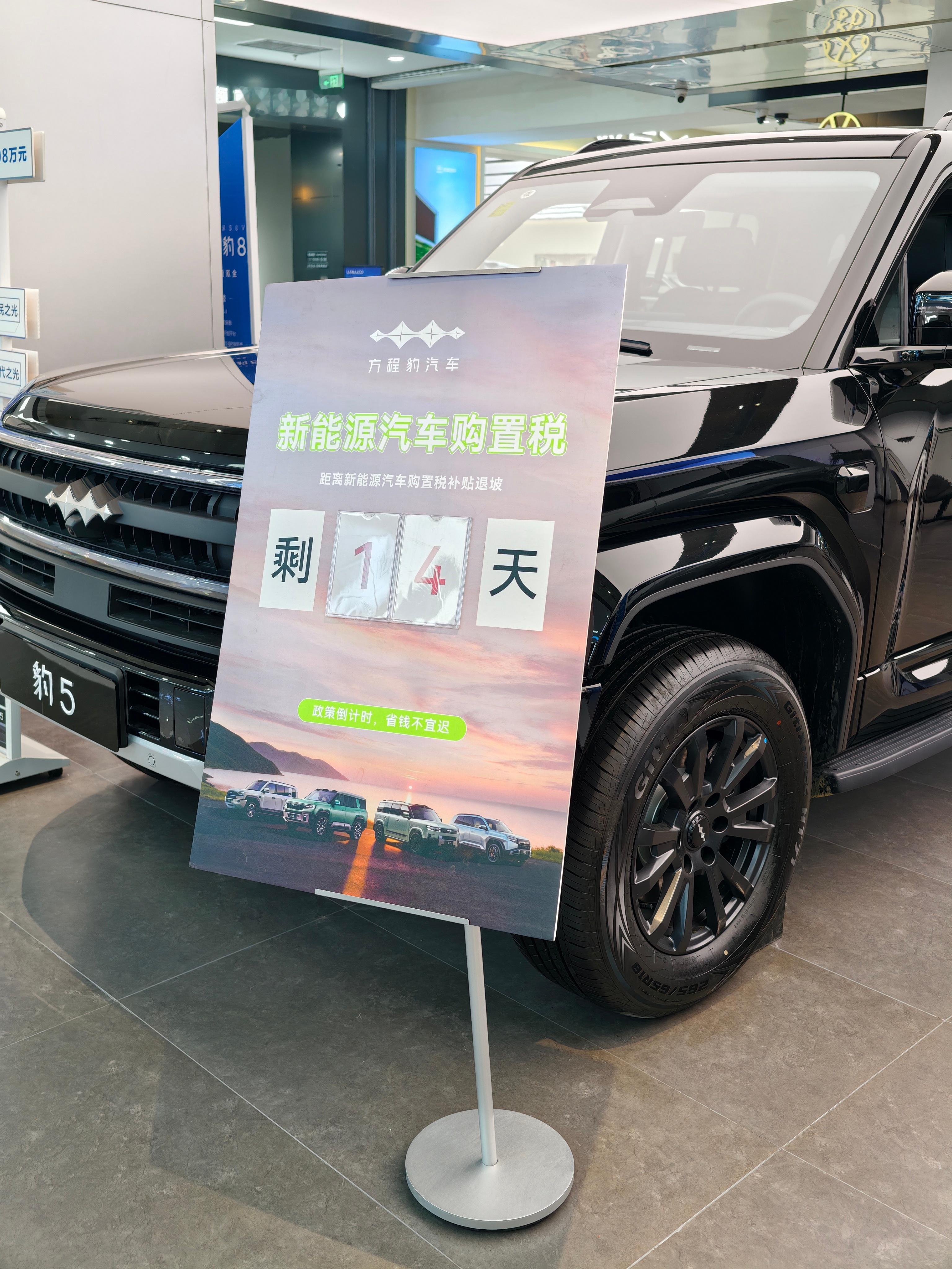 昨天逛街看到,现在门店都摆上新能源购置税倒计时了,年前买车的最后一波机会了