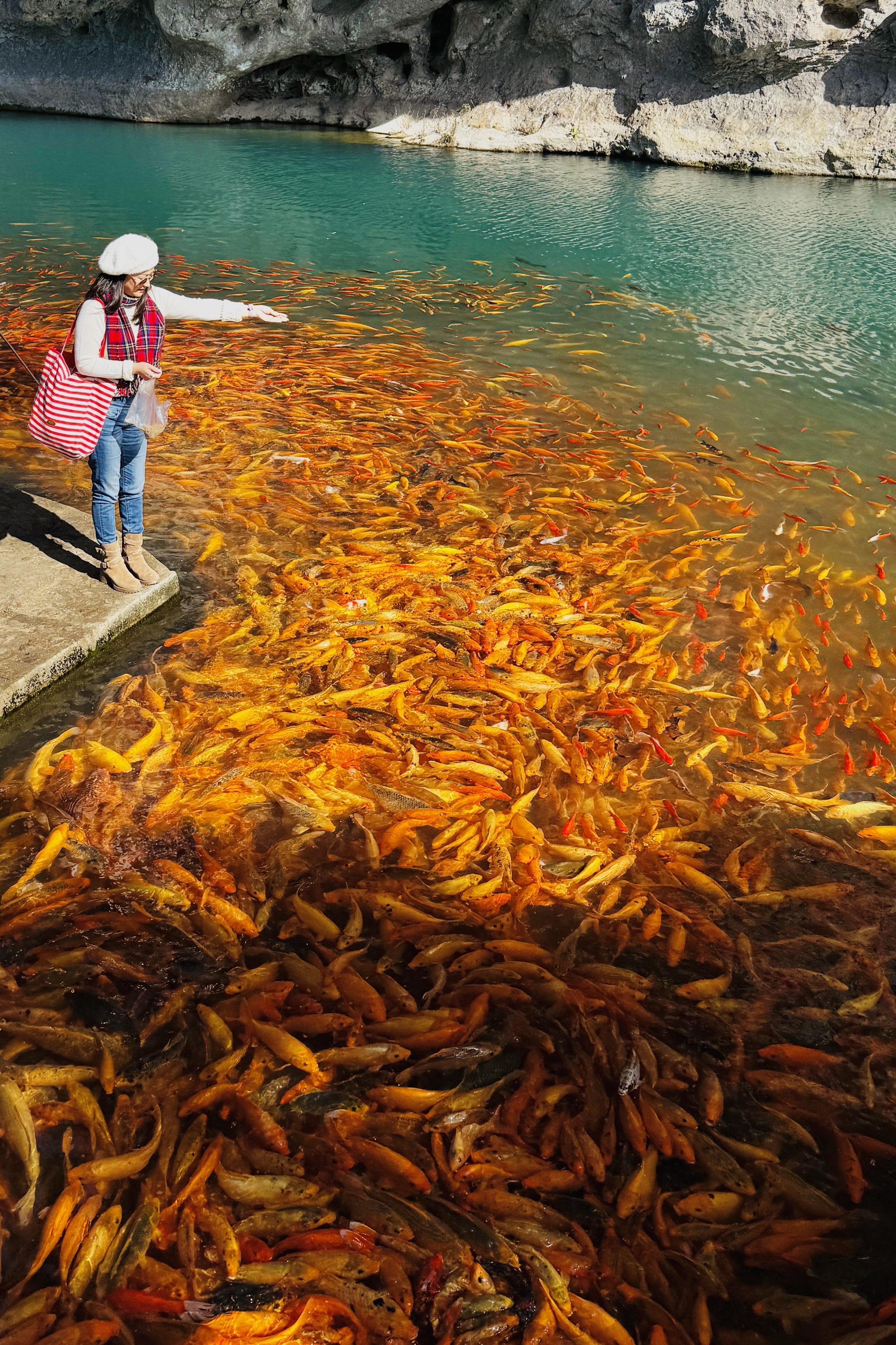 我还没到门口,就见一堆人围着,凑近一看这都啥!放生池里有上千条锦鲤!密恐症慎入!整个池子都像在流动~停车场3块钱买包鱼食,撒下去瞬间无数张嘴凑上来!这场面别处压根见不着~