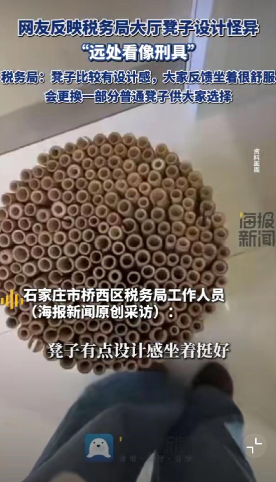 网友曝光某地税务局的神奇凳,这起身屁股不得密密麻麻?网上搜了下还挺贵。火