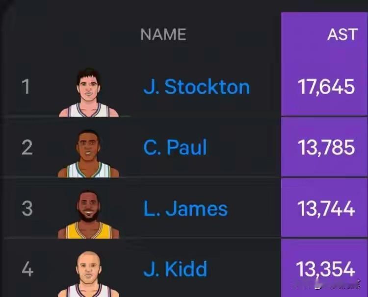 詹姆斯助攻只差保罗41次?现在的媒体为了流量真的各种为他排名提升设规则。 常规赛和季后赛数据加一起,詹姆斯的总助攻排名历史第三,距离第二的保罗只差41次了。也许只需要十多场比赛就可以完成。 前提是保罗彻底不打直接退役,但看目前情况好像还在争取中,但也不用担心,如今保罗的状态和确定本赛季结束要退,只要詹姆斯不出现重大伤病,还是可以超过的。 只是常规赛的助攻目前詹姆斯还差903次,就算下赛季还打,想要超过还是很难的。