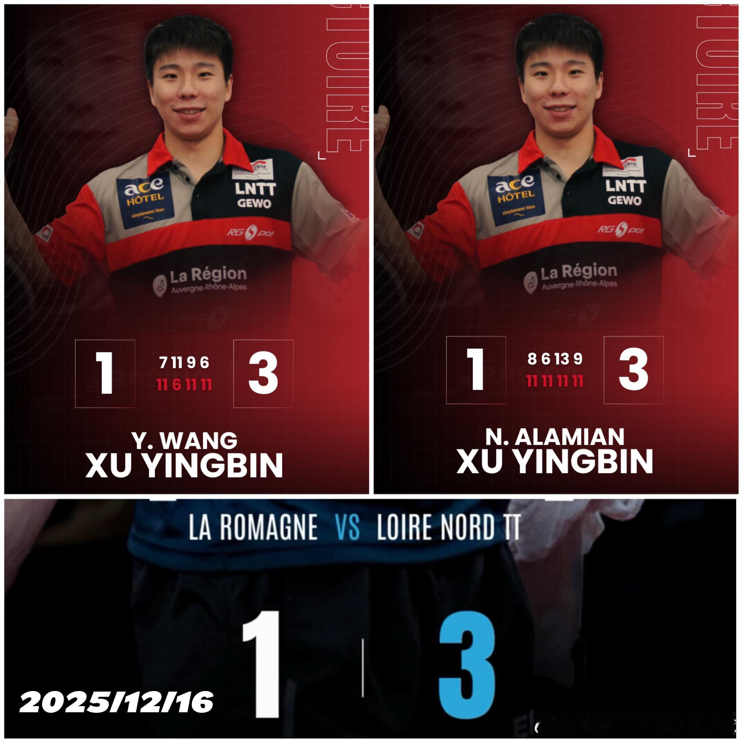 带领队伍3-1客场获胜徐瑛彬作为队伍一单出战两场第二盘 vs 削球🇸🇰汪洋 3-1胜第四盘 vs🇮🇷尼玛阿拉米亚 3-1胜